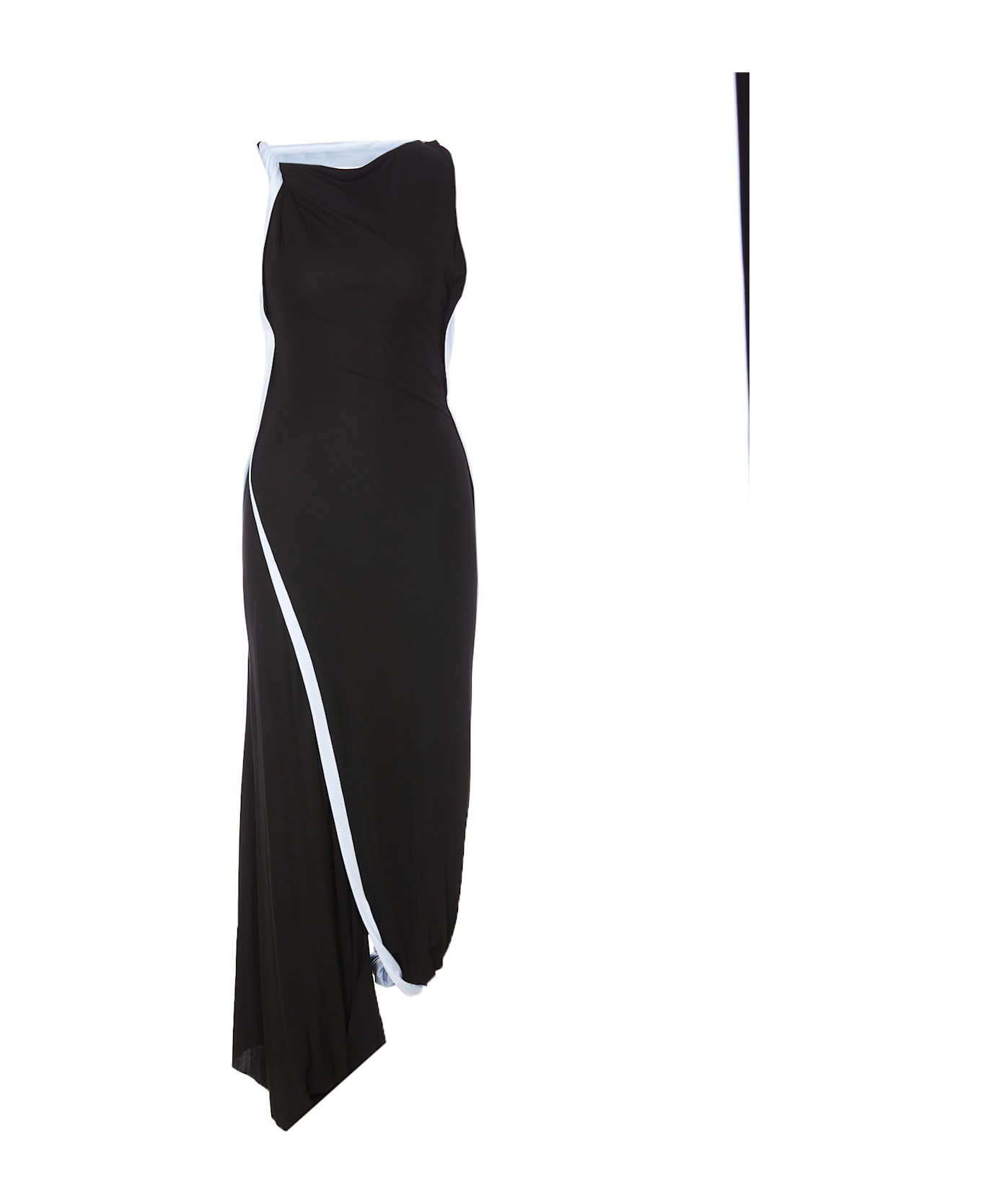 Victoria Beckham black and light blue dress, asymmetric model, one shoulder, lateral zip closure, flared model, split detail Composition: 100% Viscose, 96% Viscose, 4% Elastane