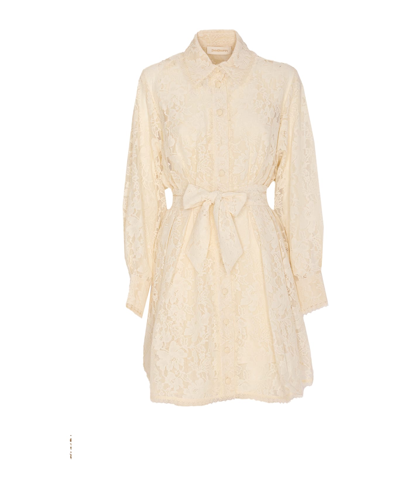 Zimmermann cream Downing Tuck mini dress, petticoat, lace detail, long sleeves, buttons on cuffs, buttons closure on the front, regular collar, belt detail on waist, mini model