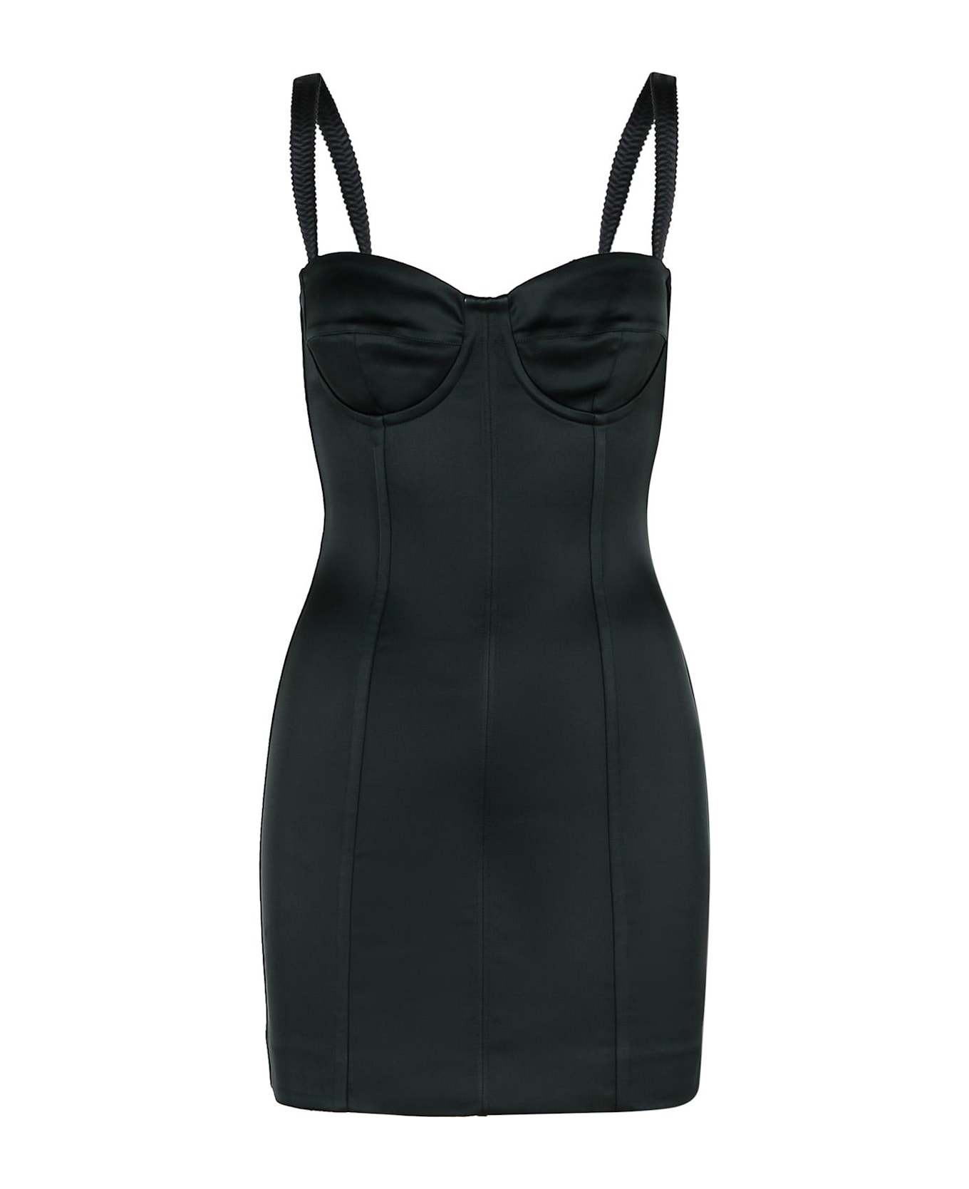 Adjustable straps, tone-on-tone corset, tight fit, back zip closure Composition: 72% acetate, 20% nylon, 3% silk, 2% elastane
