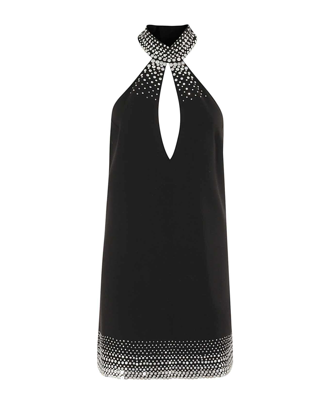 Mini dress -Amen`s -Black color -American neckline -Cut out on chest -Zip back closure -Lace on back -Uncovered back -Rhinestone detailing