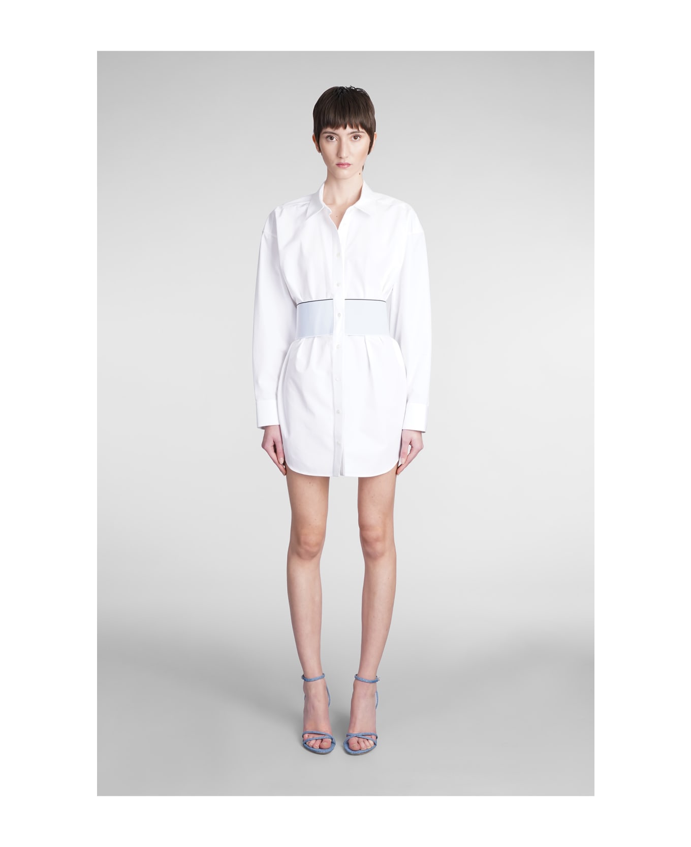 Dress in white cotton, mules style, strap closure, pointed toe, leather sole, 100% leather, Made in Italy
