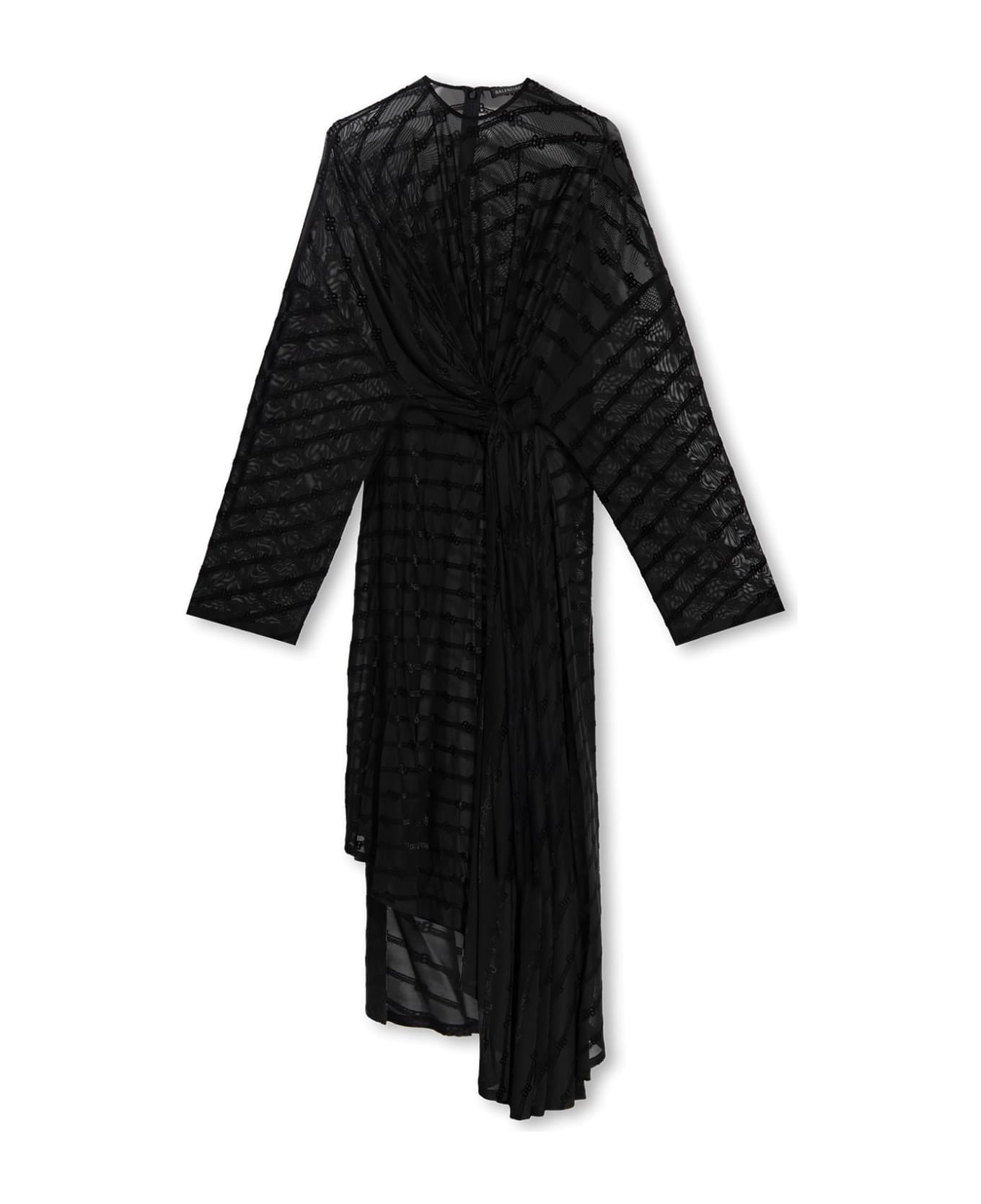 Black dress from Balenciaga. Fastened with ties, this long sleeve design features a logo, long sleeves and slits at the hem. Composition: 100% Viscose