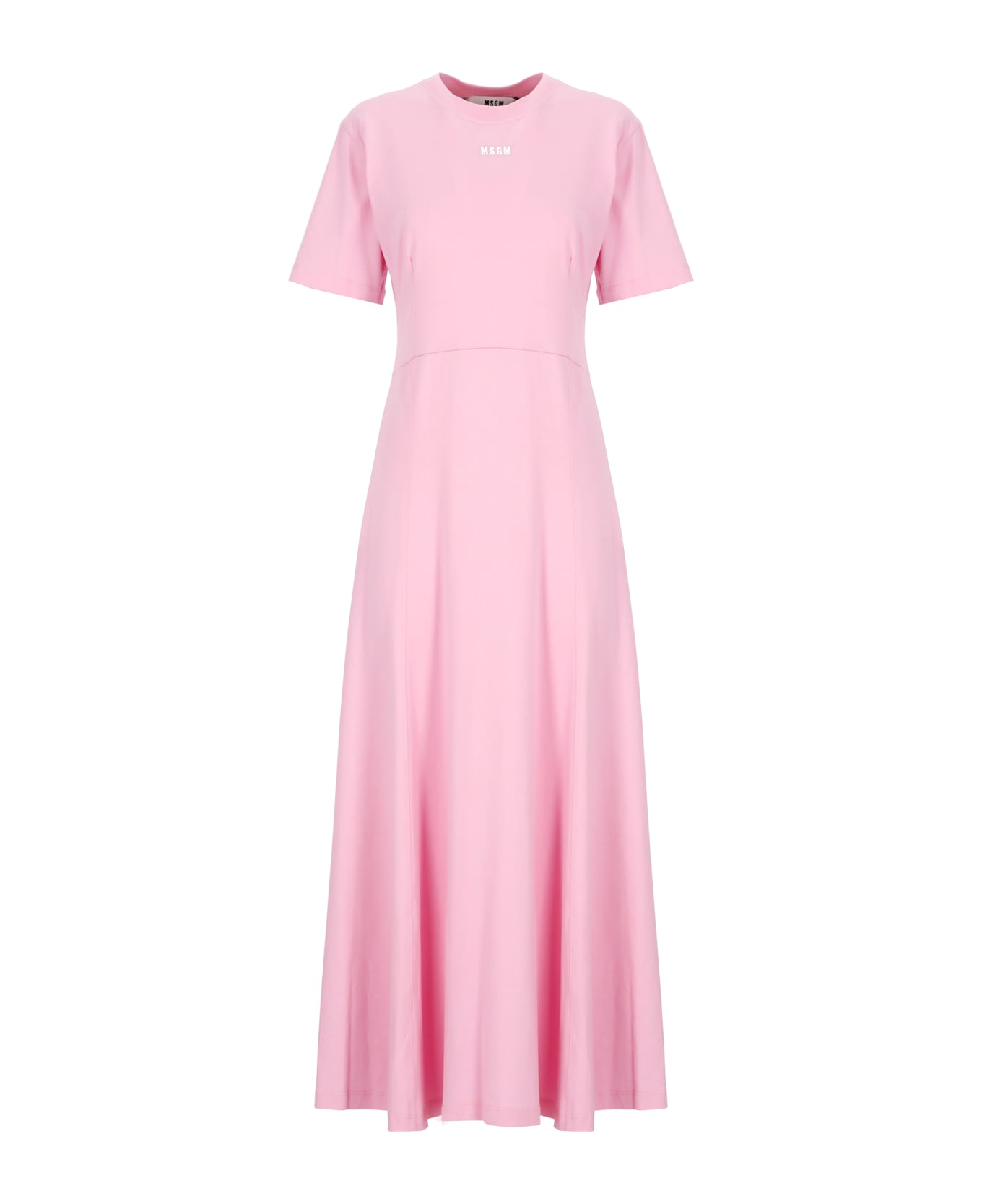 - Pink MSGM cotton dress for woman - Round neck - Short sleeves - Front contrasting color logo