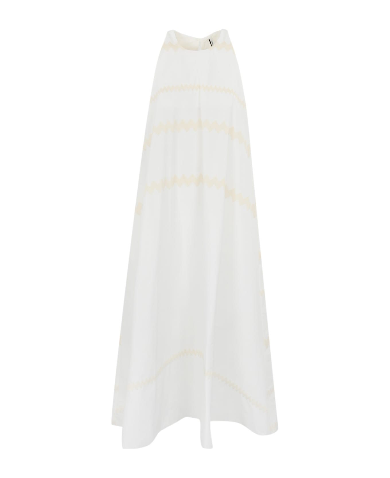 women's long cotton dress: cotton poplin sleeveless crew neck zig zag embroidery in contrasting colour flared line regular fit composition: 64% cotton, 31% polyamide, 5% elastane