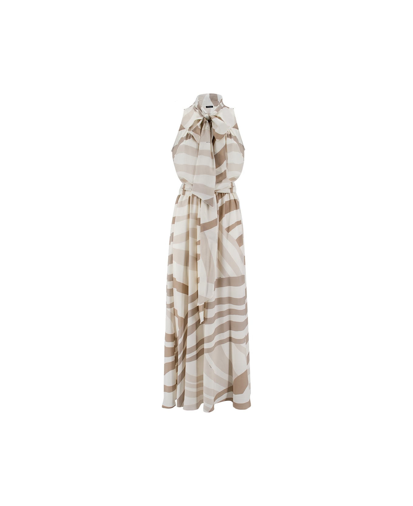 Elegant and sophisticated, the long armhole dress is made of precious silk with a contrasting pattern. The garment is entirely cut and sewn in Naples by Kiton's master craftsmen. The dress features an elastic waist emphasised by the decorative ornament of the matching silk sash and is embellished by the ribbon on the neck. Composition: 100% SE