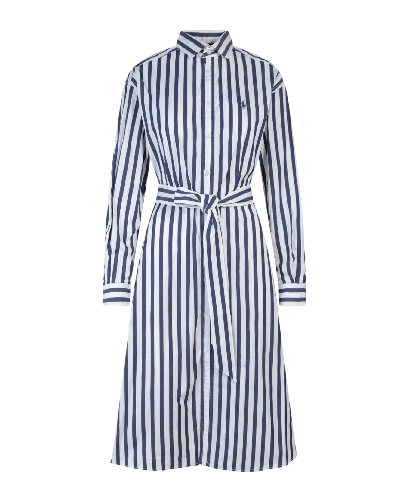 Cotton chemisier dress with striped motif