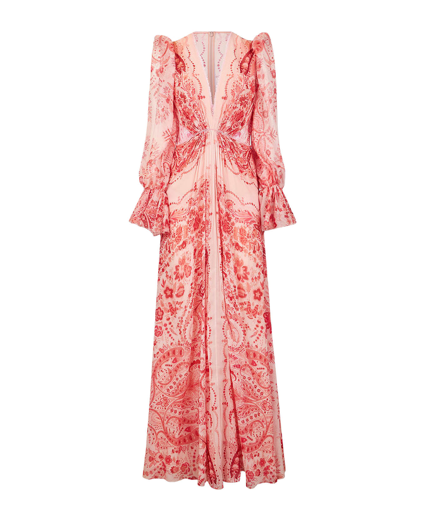 Silk long dress with iconic print - V-neckline - Closure With Zip On The Back - All-over Multicolor Print - Made In Italy - 100% Silk - Lining : 100% Silk