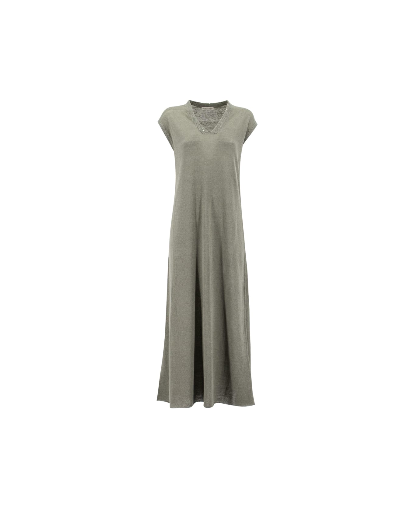 Minimal line for the dress made of a soft and light linen and cotton bland, embellished with knitted collar and sleeve edges, regular fit.