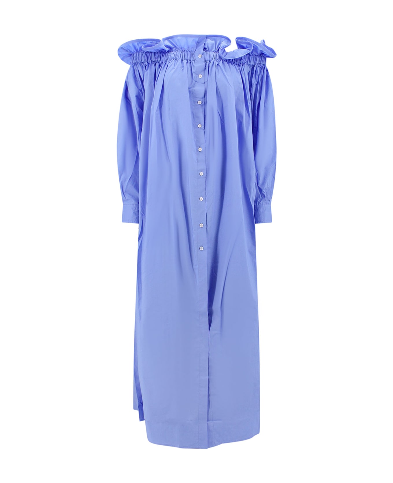 Cotton chemisier dress with frontal ruffle