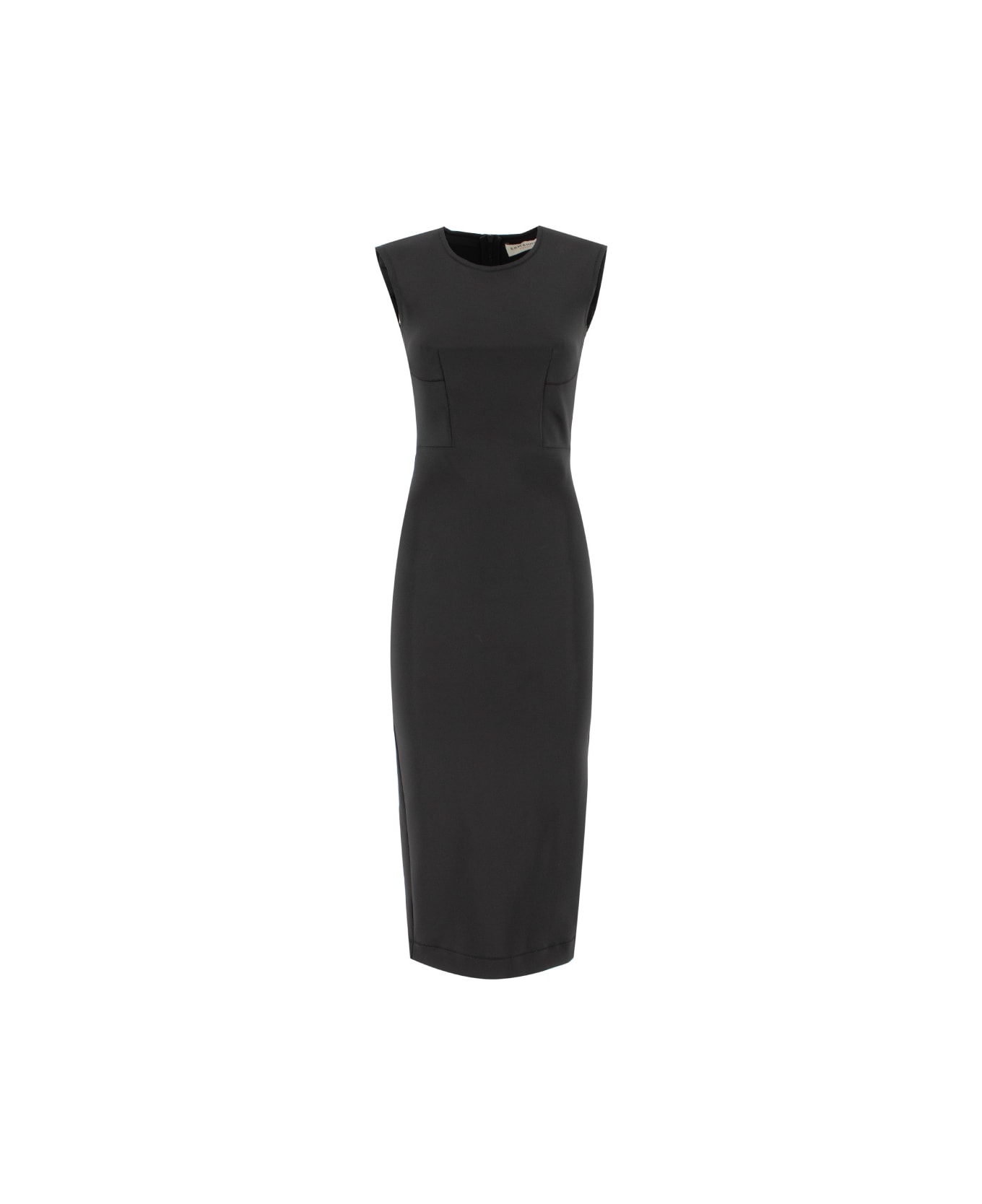 Long sheath dress made of technical cady, small round neckline, back zip fastening, regular fit.