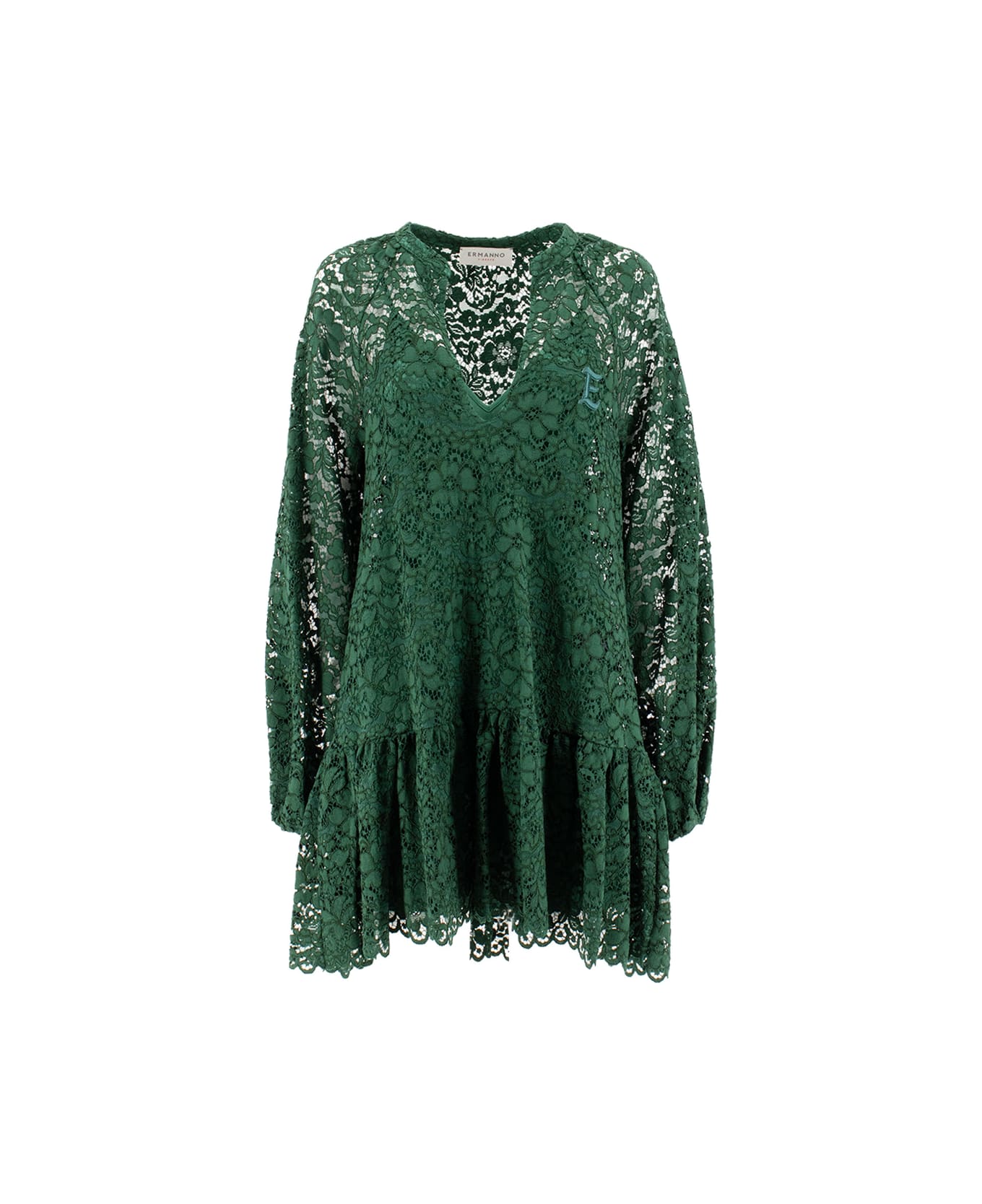 Straight line mini dress made of precious lace, the matching slip enhances the floral transparency of the lace, regular fit. Composition: 46% VI, 39% CO, 15% PL