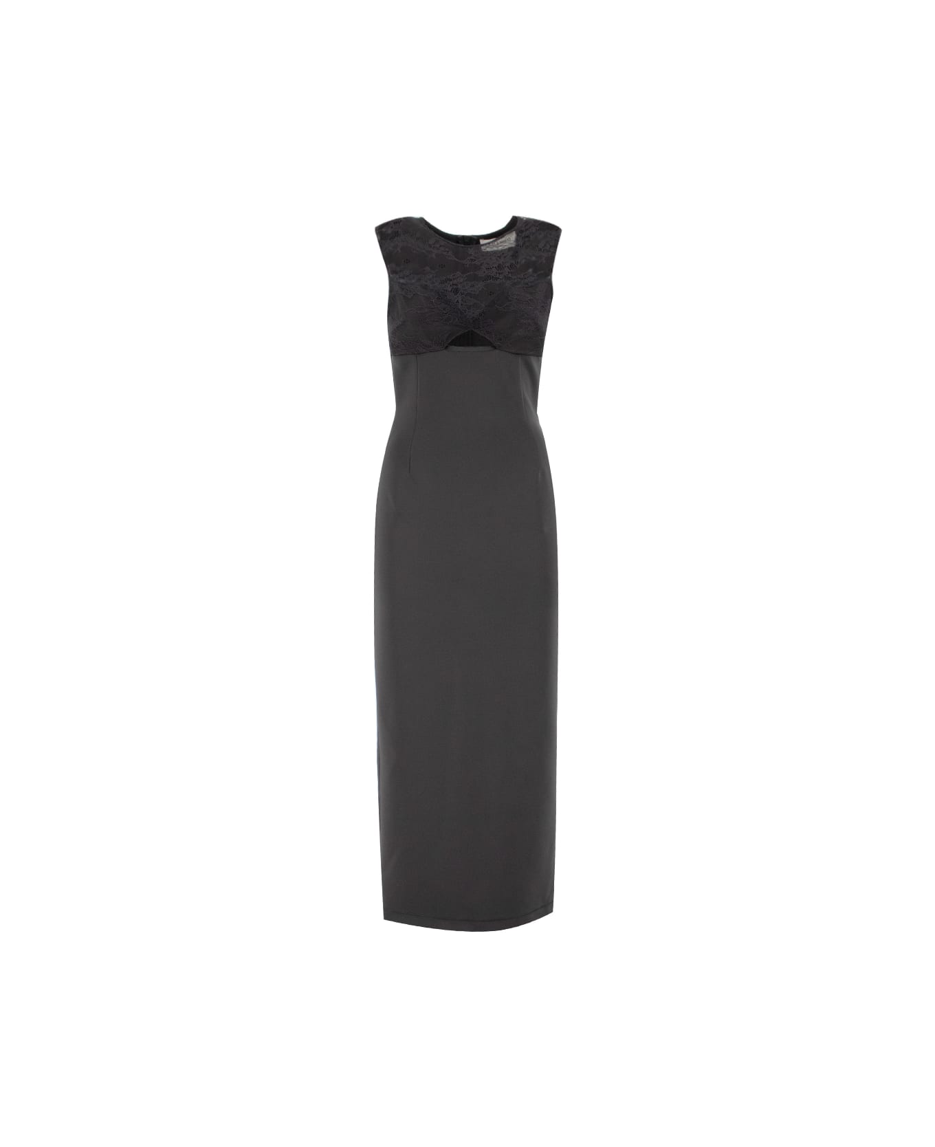 Long sheath dress in technical cady, embellished with lace insert at front, back zip fastening, back slit, regular fit. Composition: 89% PL, 11% EA