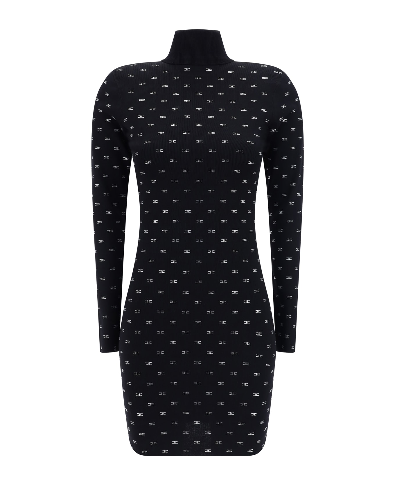 Turtleneck dress by elisabetta franchi, ribbed turtleneck, structured and padded shoulders, iconic brand logo embellished with shiny all-over repeated beads, monochrome ribbed design, slim fit. Composition: 37% % Nylon, 63% % Viscose