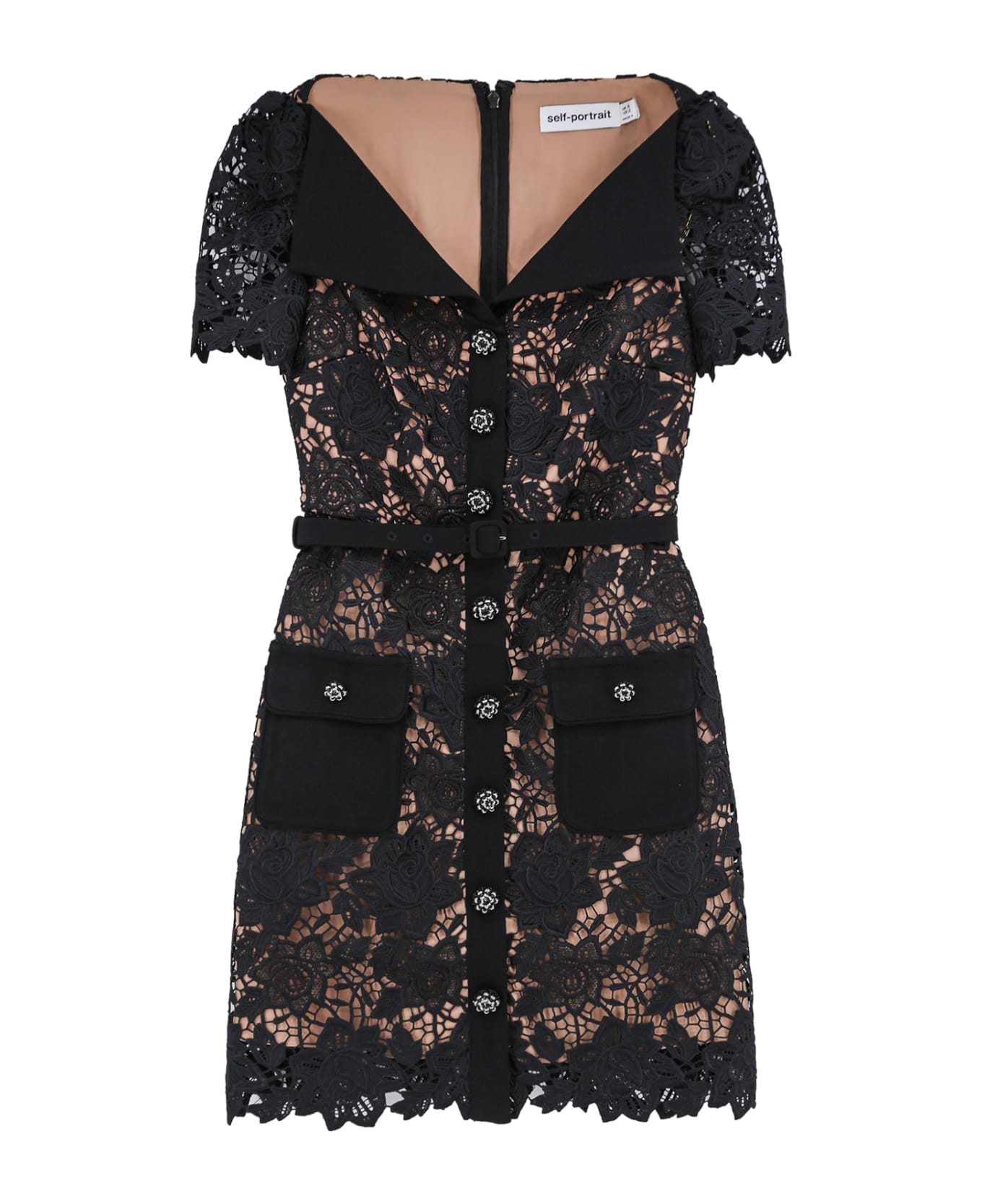Lace dress with jewel buttons
