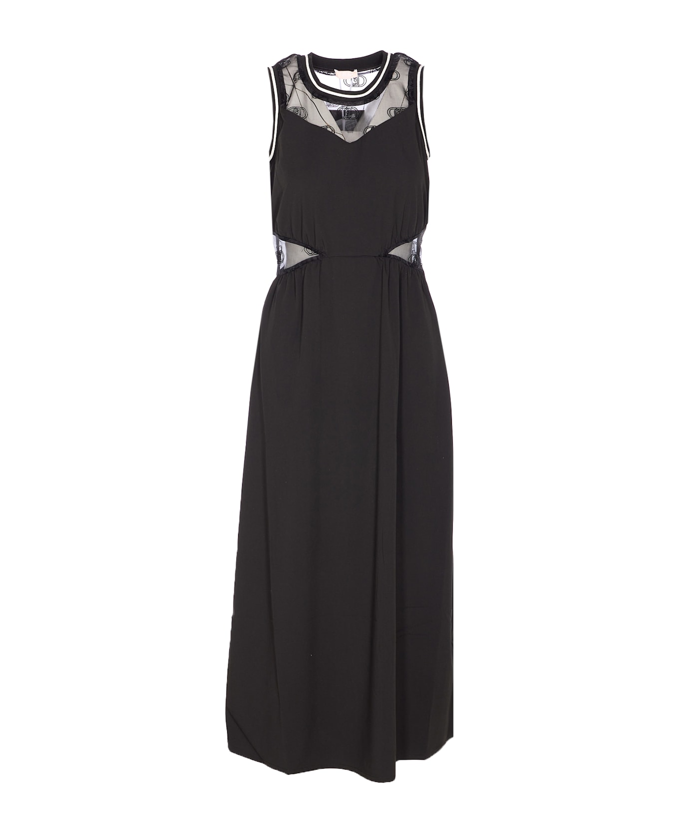 Liu Jo black dress, crewneck, lateral zip closure, sleeveless, transparent detail, embroidered logo Composition: 67% Polyester, 30% Bamboo, 3% Elastane, 100% Polyester