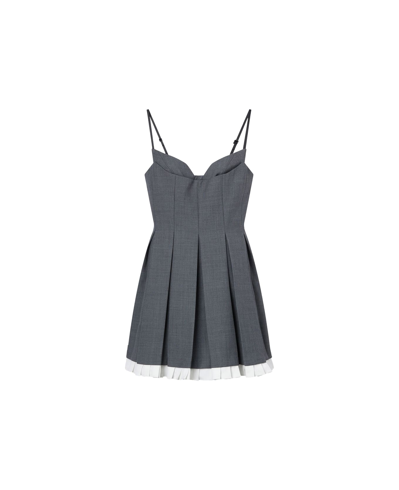 grey adjustable straps pleated skirt layered hem zip fastening