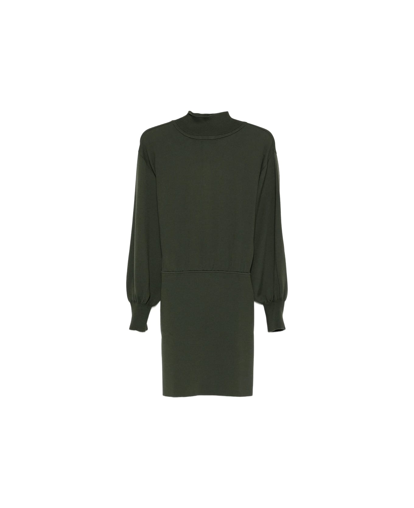 dark olive green high neck balloon sleeves defined waist straight skirt long sleeves