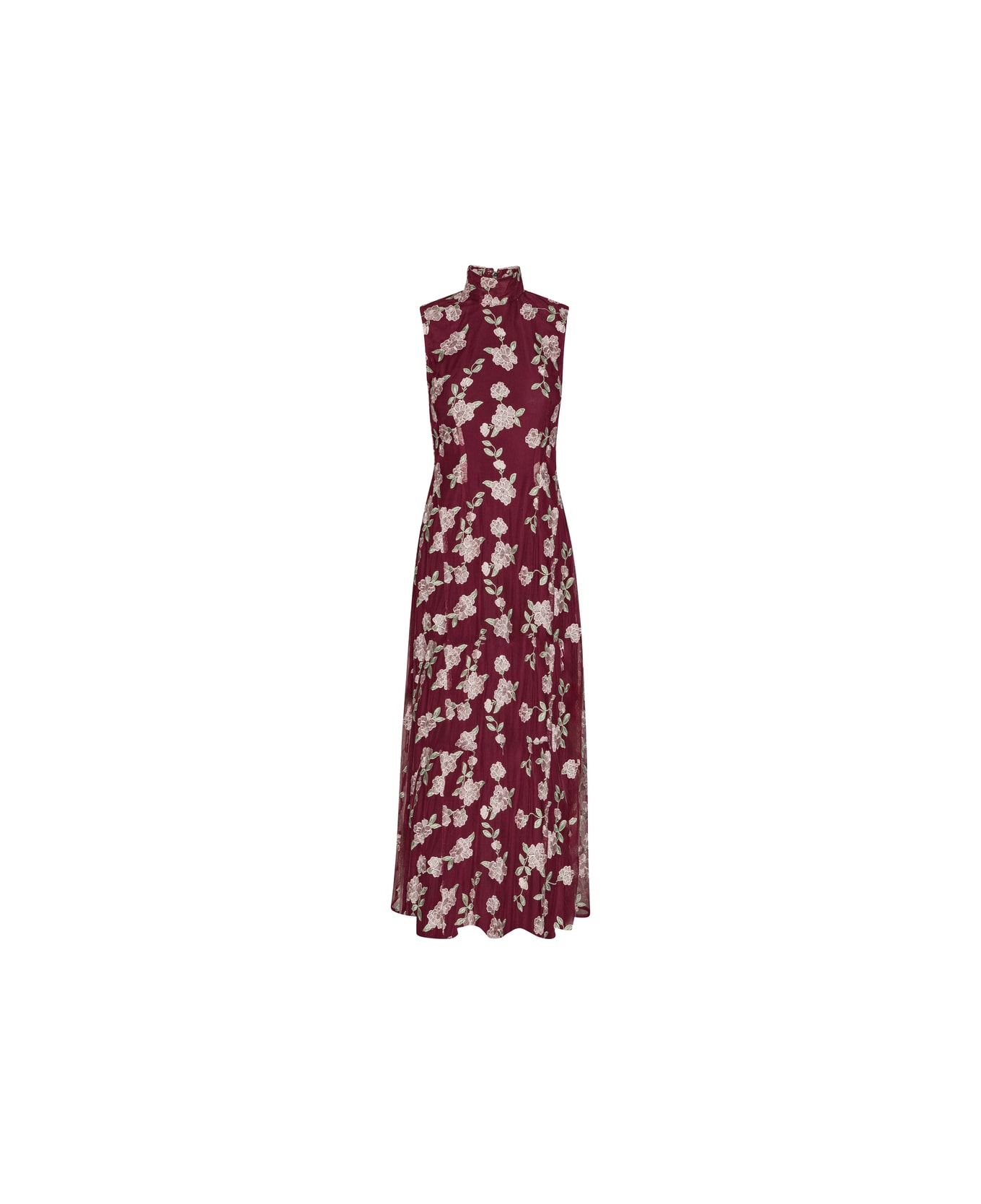 red floral embroidery sleeveless design