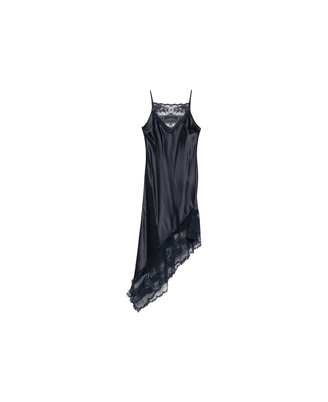 dark blue lace trim asymmetric hem thin straps sleeveless