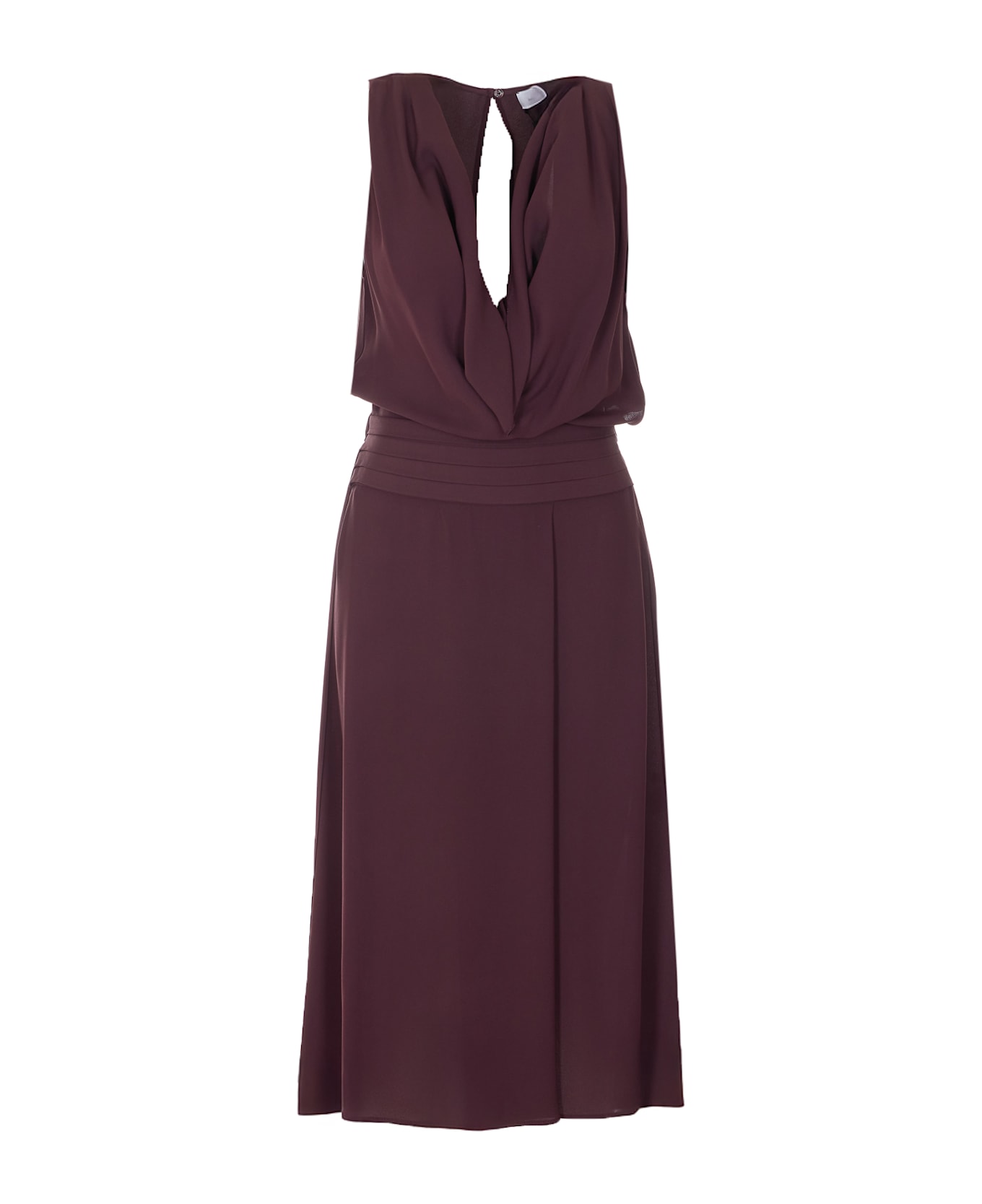 Elisabetta Franchi bordeaux dress, lateral zip closure, button on the back, cut out detail on the back, sleeveless, midi model
