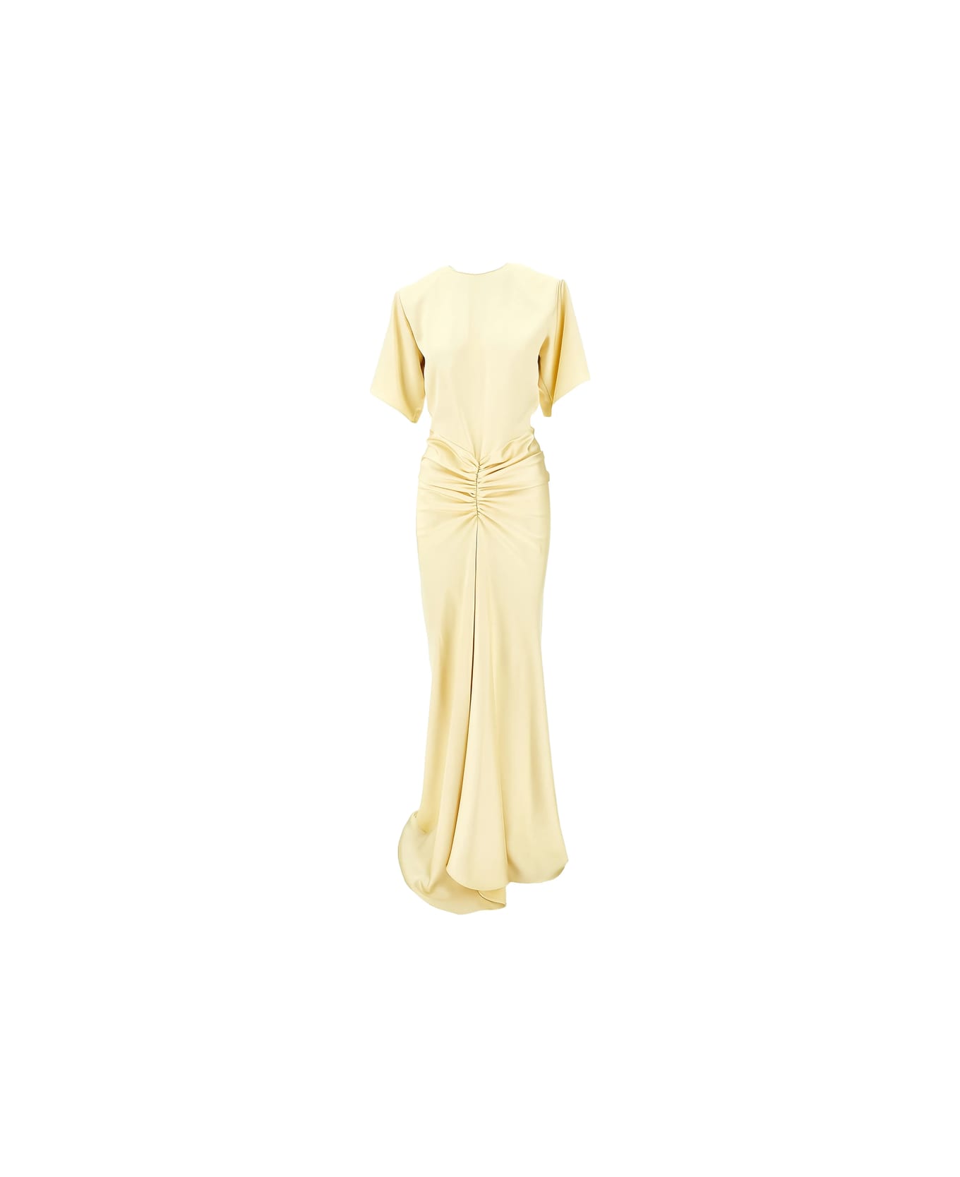 light yellow ruched detail short sleeves maxi length