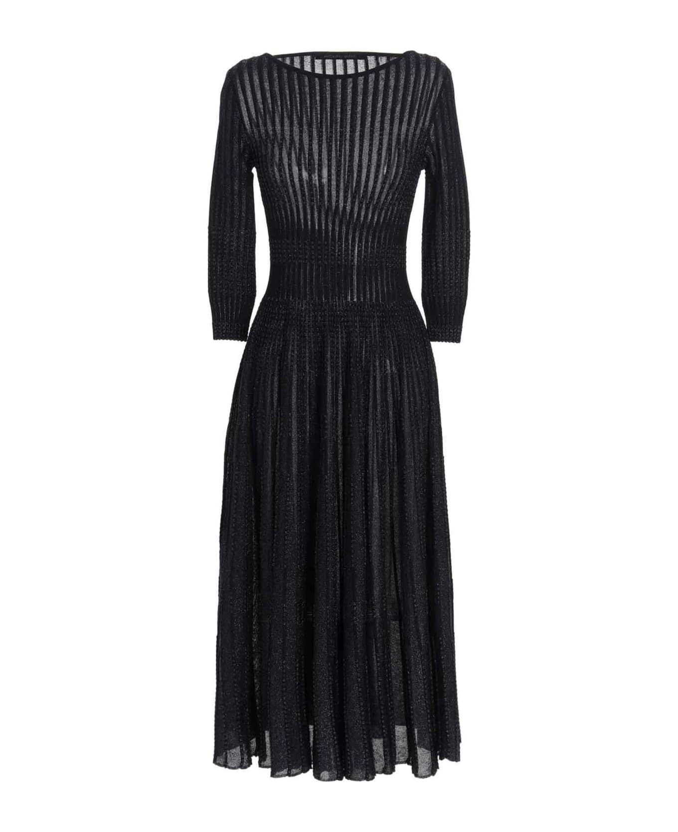 'Esmeralda' ribbed lurex knit midi dress with boat neck and 3/4 sleeves.