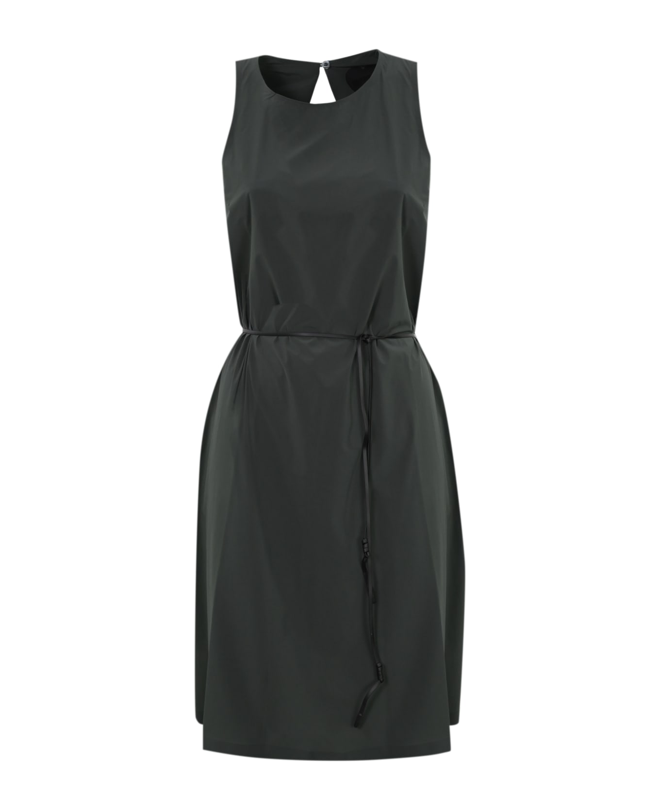short women's dress in technical fabric: sleeveless round neckline closure on the back with neckline belt at the waist regular fit composition: 78% polyamide, 12% elastane