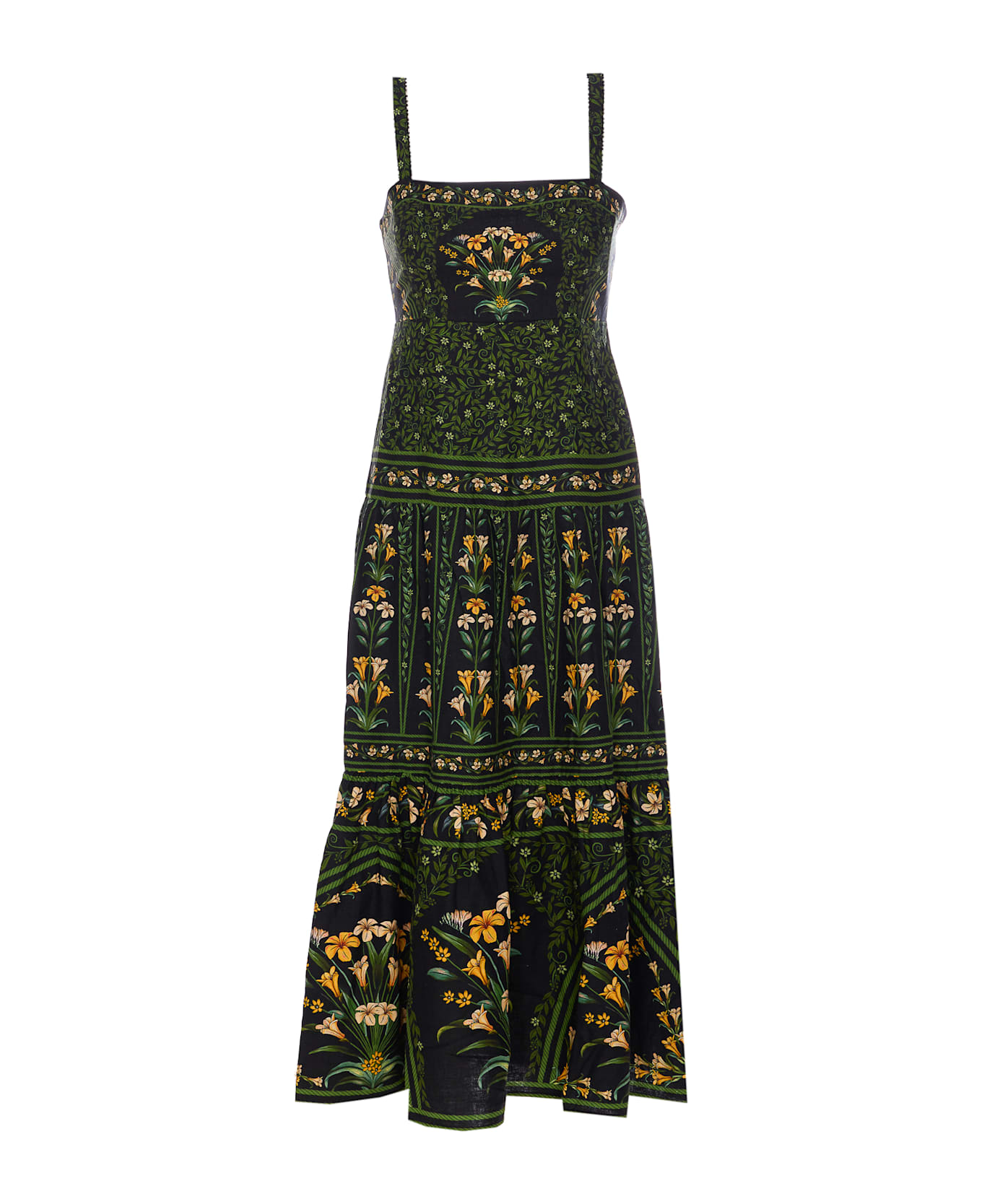 Farm Rio green Flowers Arch dress, zip and hook closure, adjustable shoulder strap, patterned, boat neck, midi model