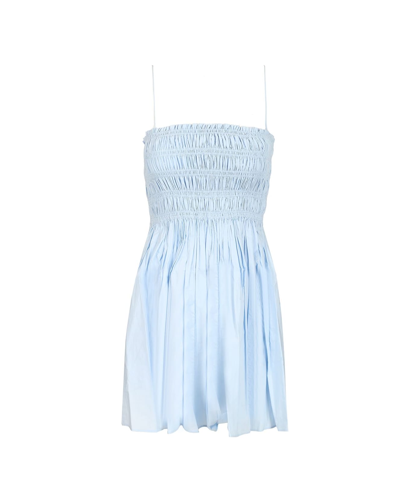 Organic cotton poplin gathered bodice mini dress by Matteau, featuring side pockets, delicate shoulder straps and double elastic repeat gathered details.