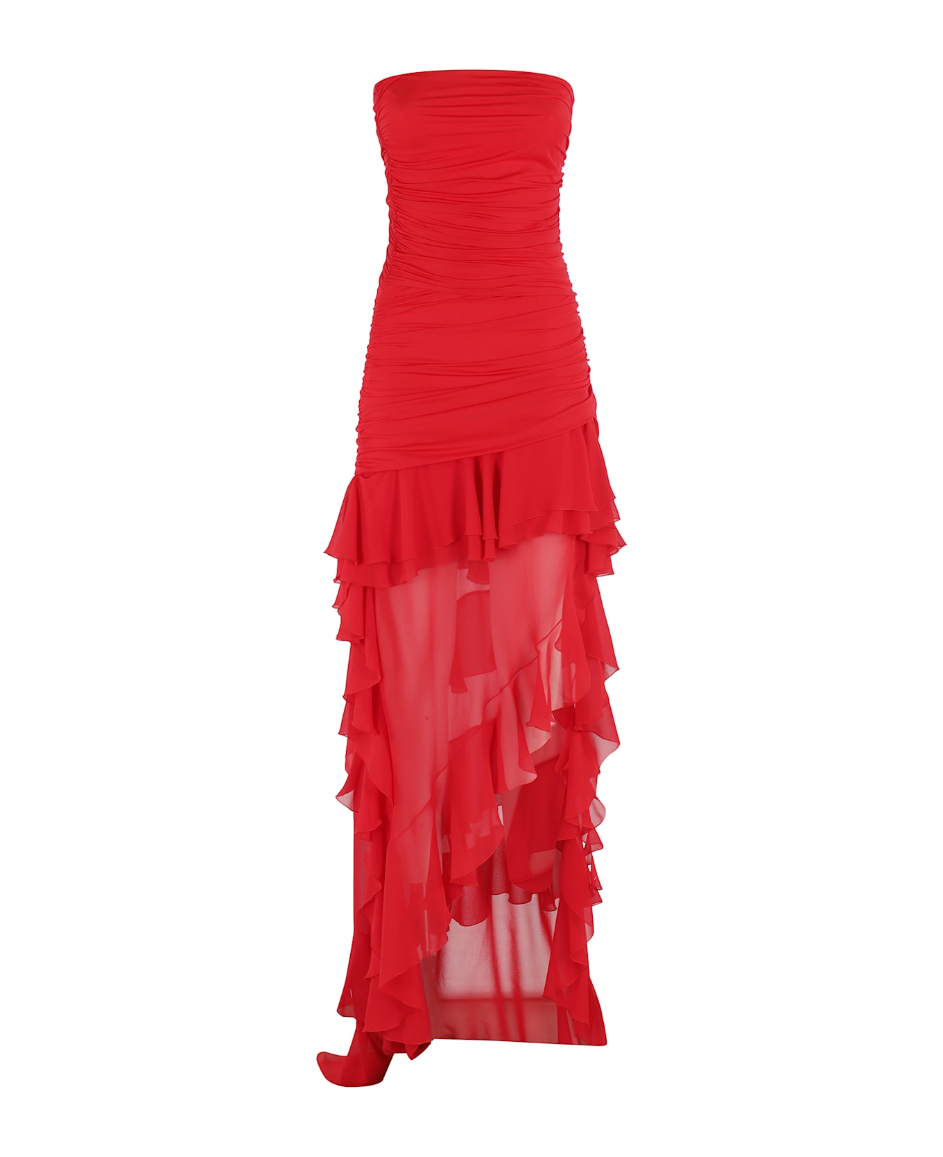 Georg dress - Blumarine - Red color - Jersey fabric - Draped bustier - Asymmetrical chiffon ruffle skirt - Side slit - Regular fit