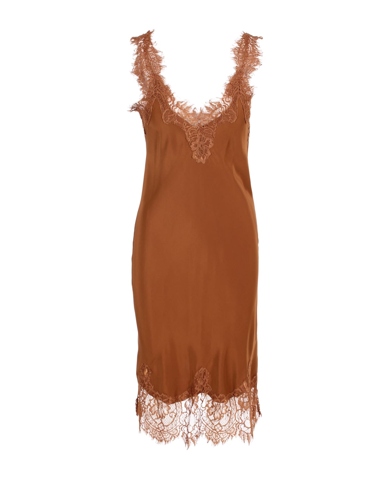 Sleeveless silk dress, V-neckline, hem with lace detail, embellished straps, solid color, by Gold Hawk Composition: 100% Silk; Decoration:, 65% Viscose -, 20% Cotton -, 15% Nylon