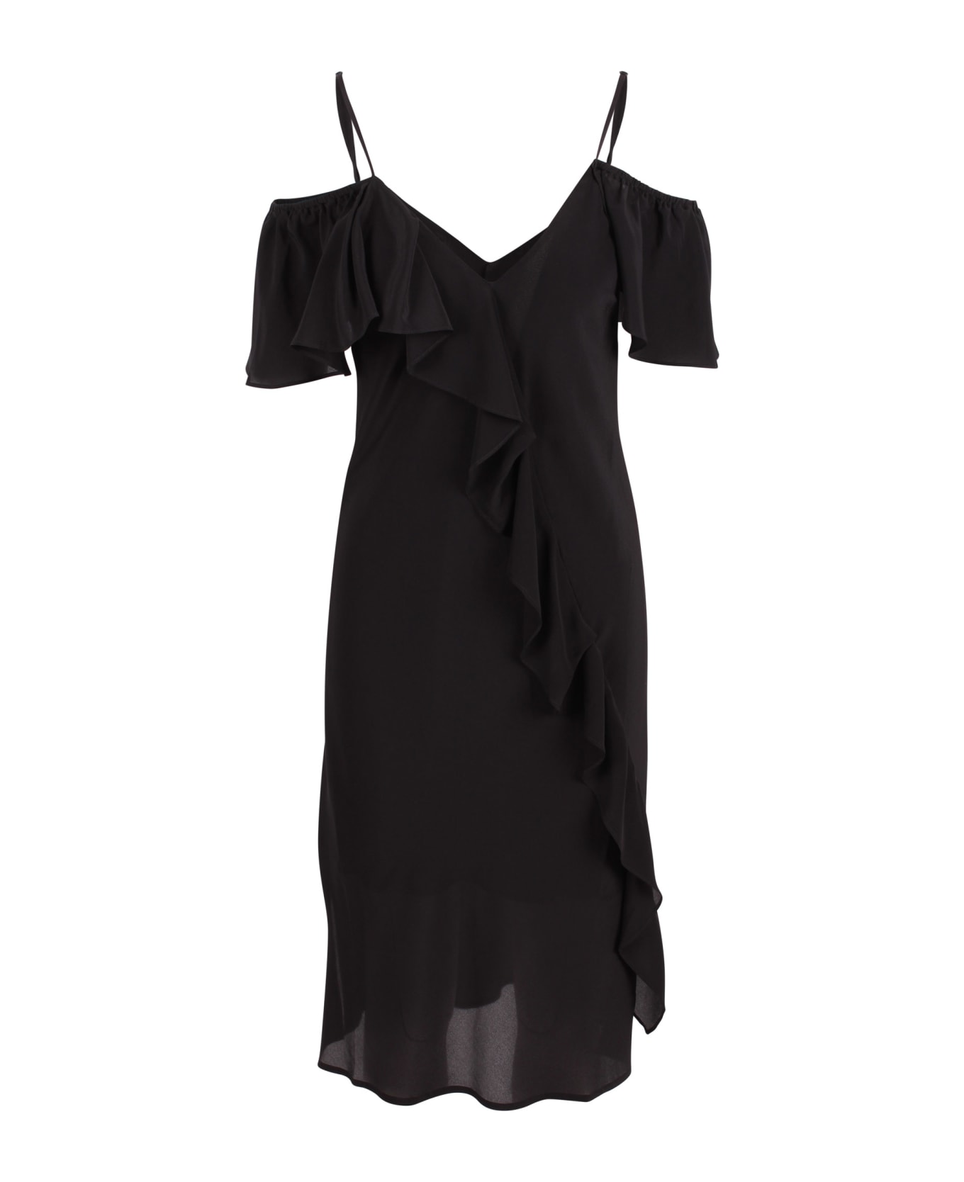 Short Dress, short sleeves, Wavy ruffles design, adjustable shoulder straps, in black, by Gold Hawk Composition: 100% Silk; Lining:, 100% Polyester