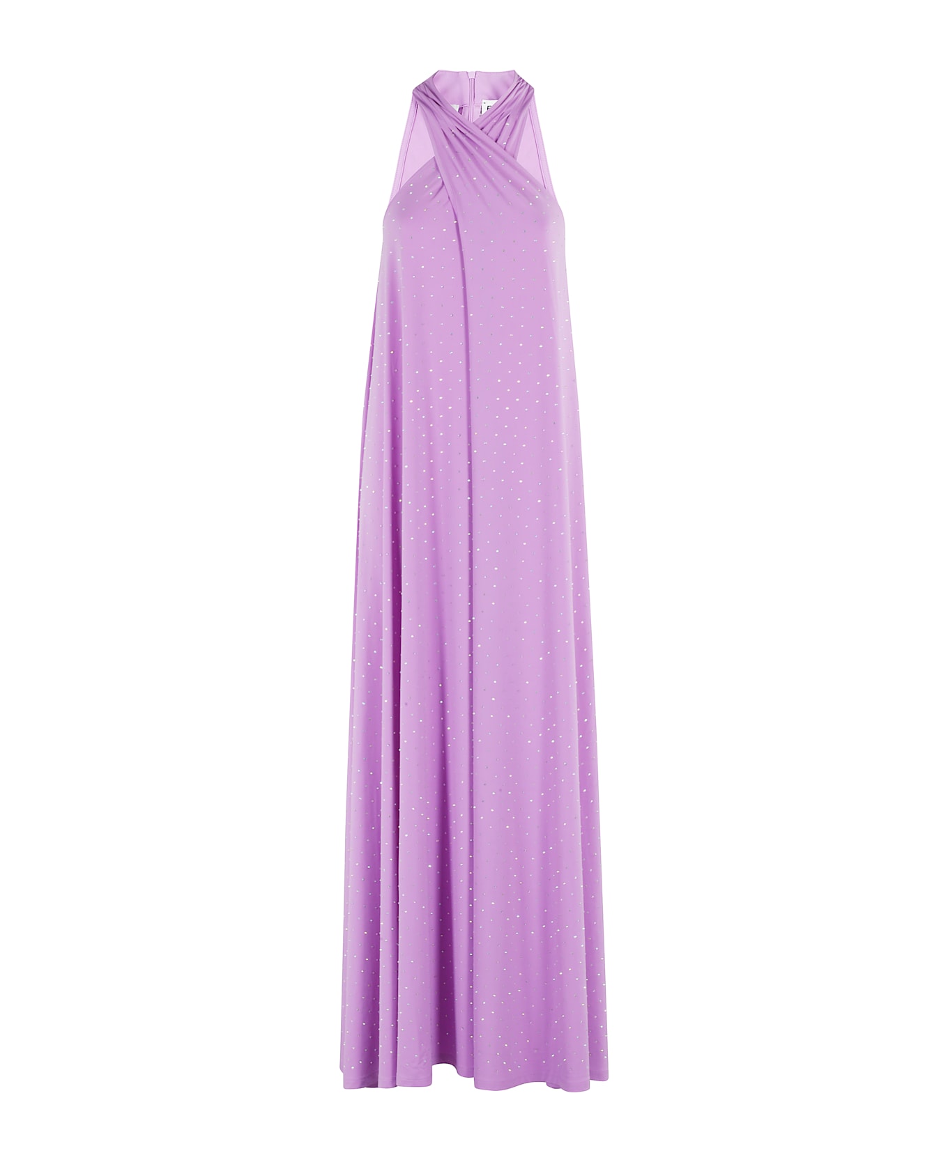 Hisha dress - Essentiel Antwerp - Lilac color - Fluid fabric with all-over rhinestones - American-style crossover neckline - Flared design - Back zipper closure - Loose fit