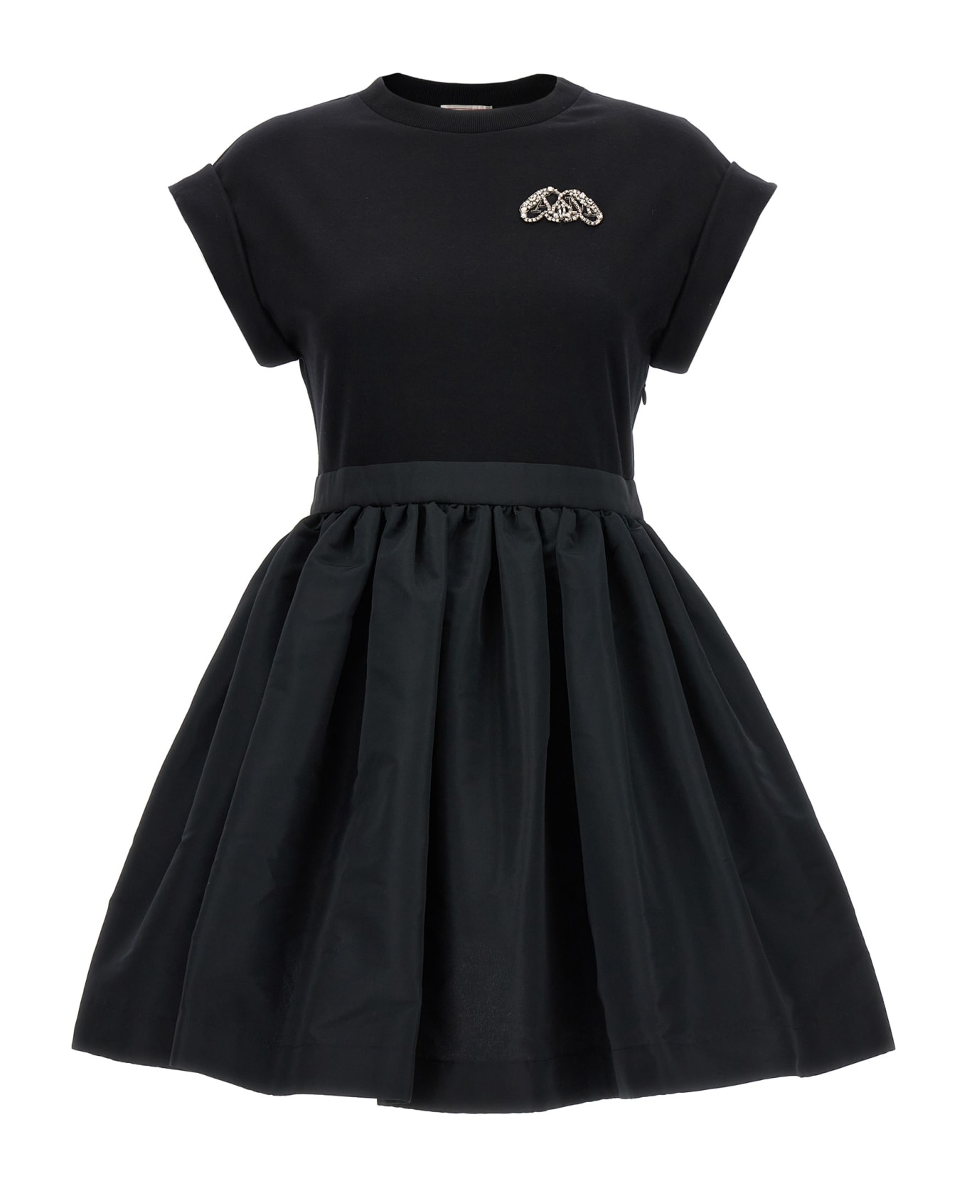 'Hybrid' cotton jersey dress with embroidered Seal logo and turned-up short sleeves, polyfaille curled skirt, side zip closure. Composition: 100% cotton