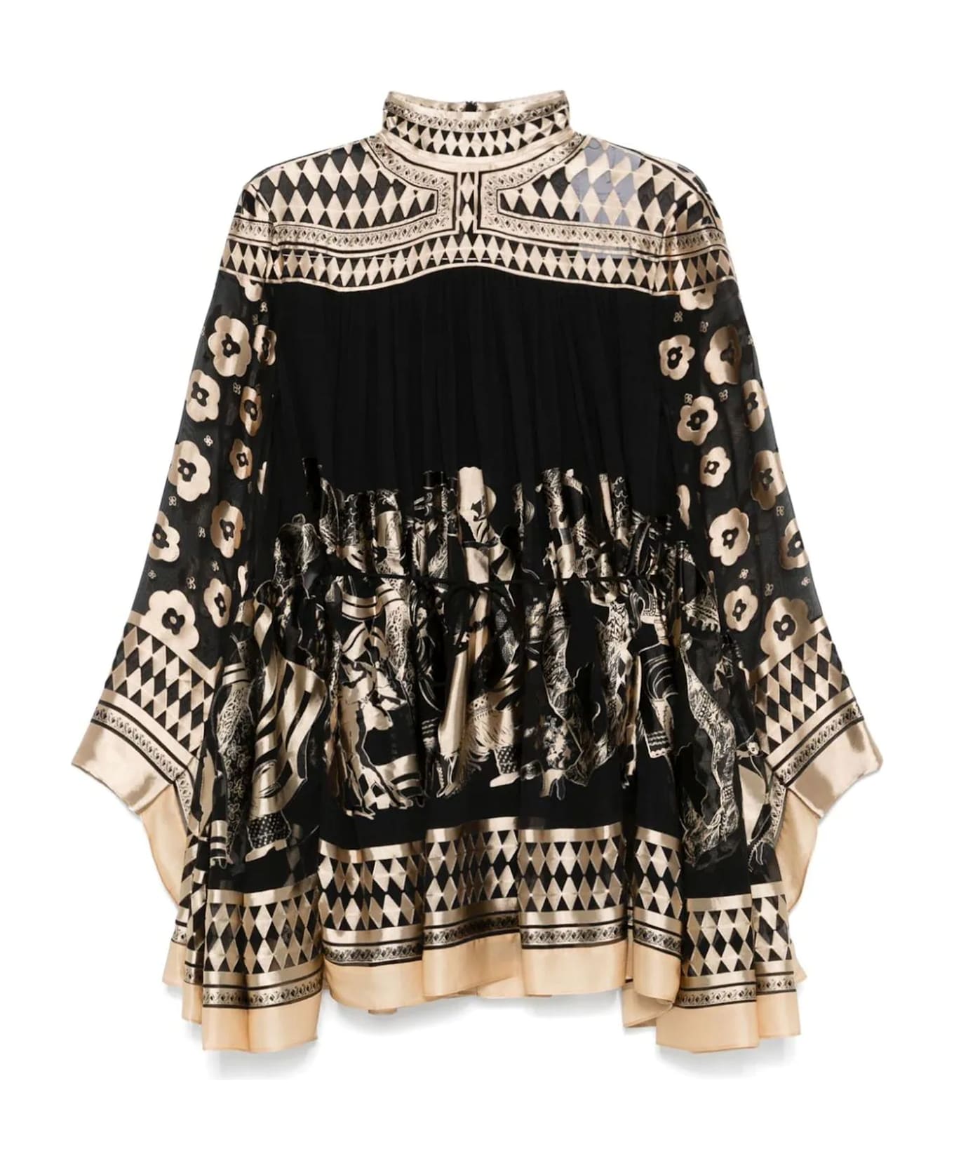 Illustration Otto mini dress, Stand collar with centre back zip closure, Rouleau waist tie with gold toggle ends, Batwing sleeves, French seams throughout, Lined Composition: 65% Viscose, 35% Silk