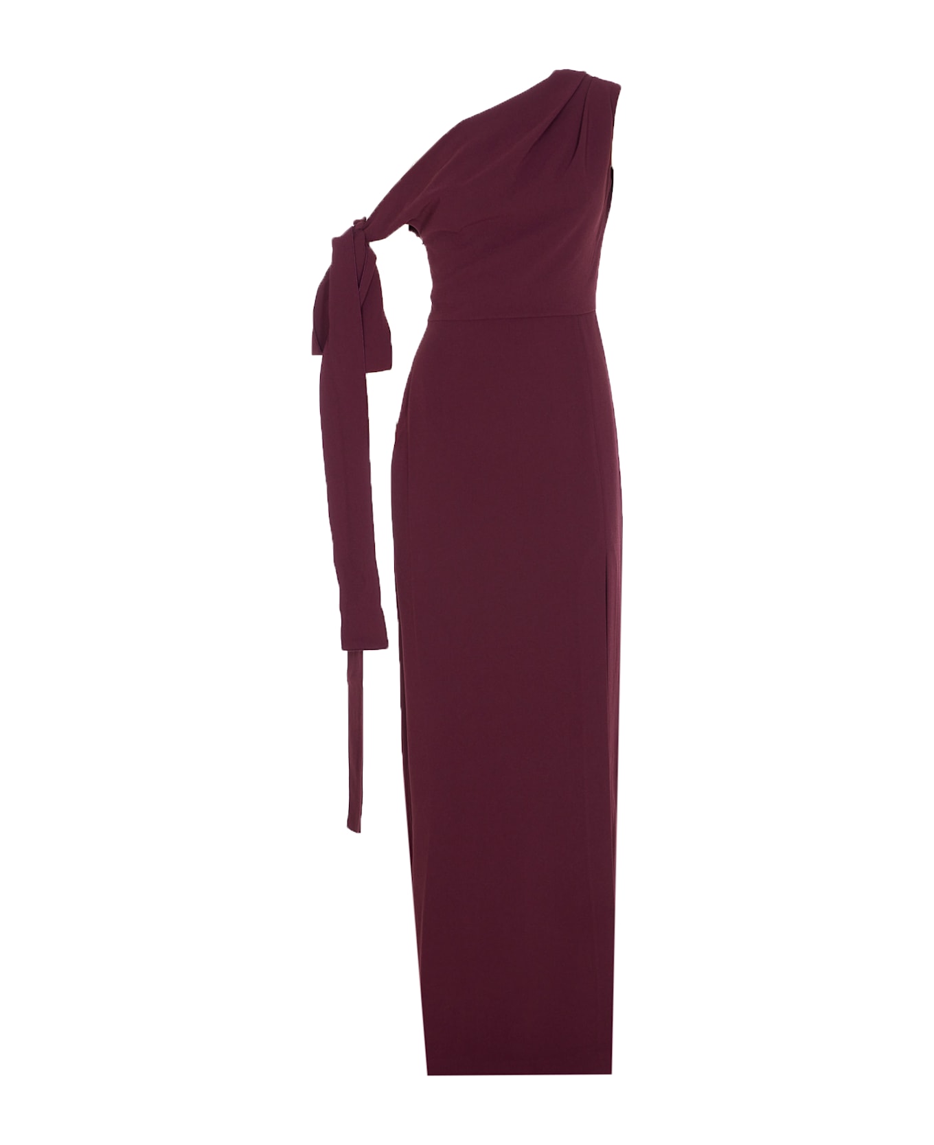 Solace London raisin Irina maxi dress, lateral zip closure,lateral split detail, lateral bow detail, long model Composition: 100% Polyester
