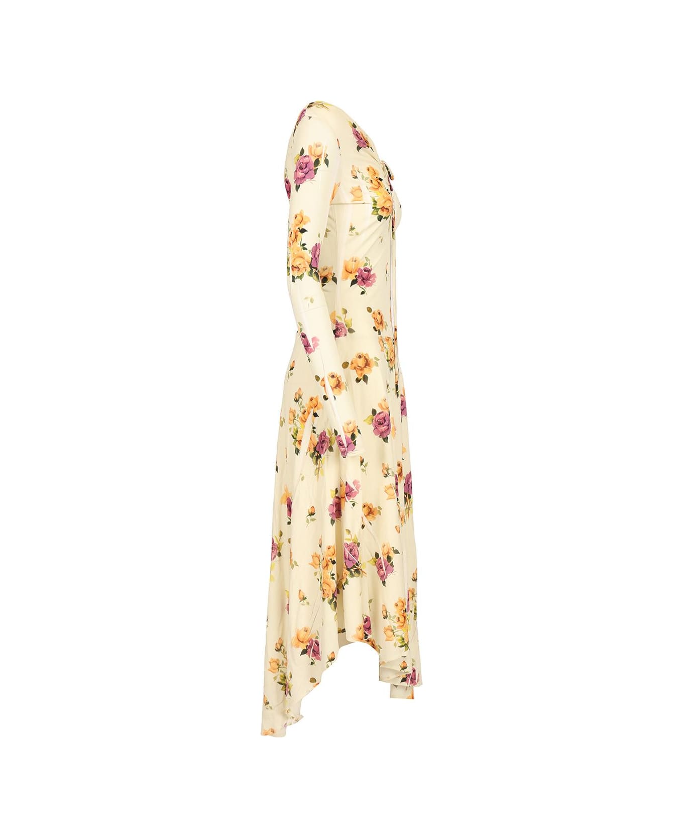 Printed viscose jersey midi dress by Acne Studios, with asymmetric hem, long sleeves, crew neck with drawstring.