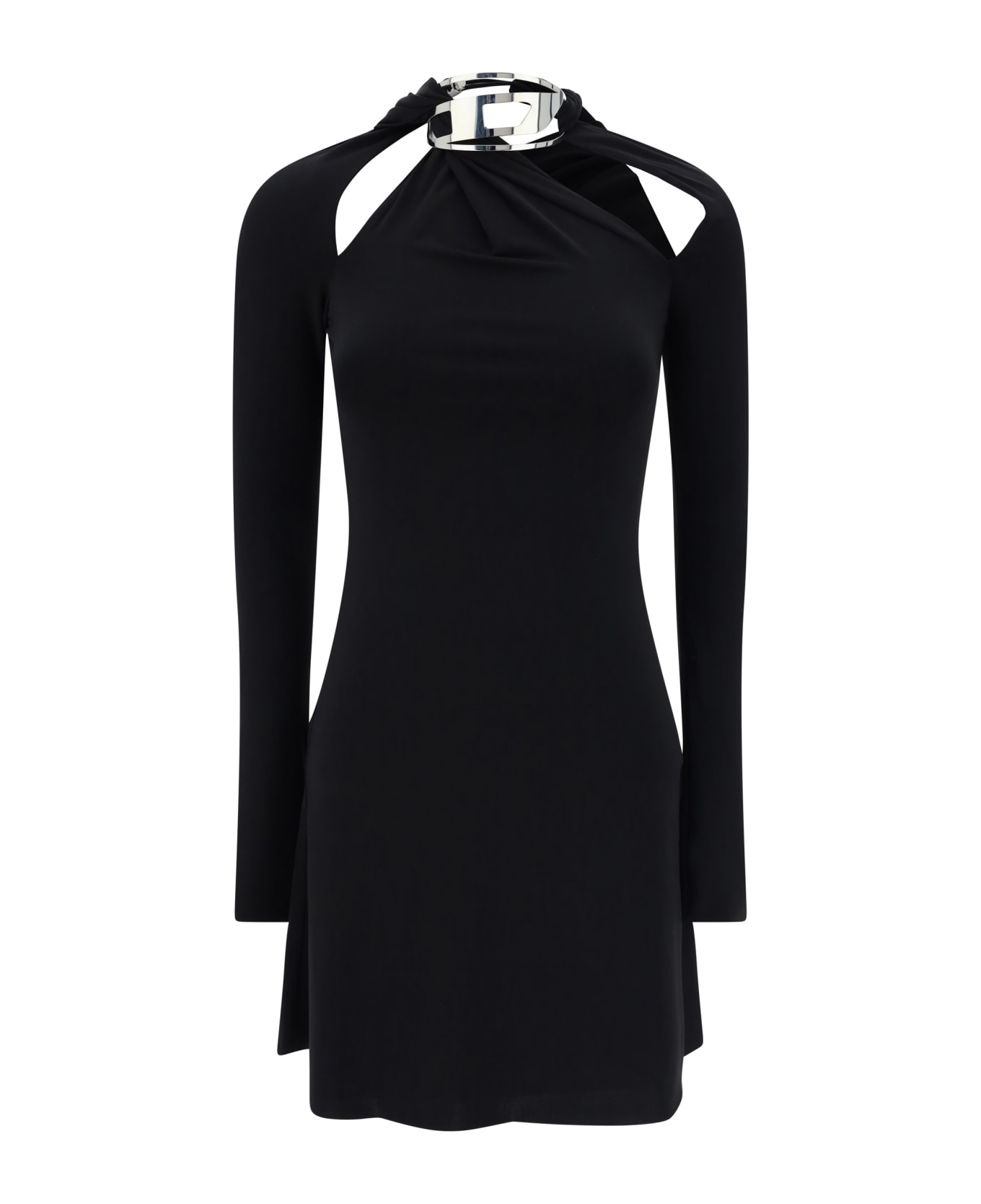 Kafy dress by diesel, long-sleeved mini style, stretch fabric, draped cut-out details on front, iconic oval-d logo applique on neckline, regular fit. Composition: 16% % Elastane, 84% % Polyester