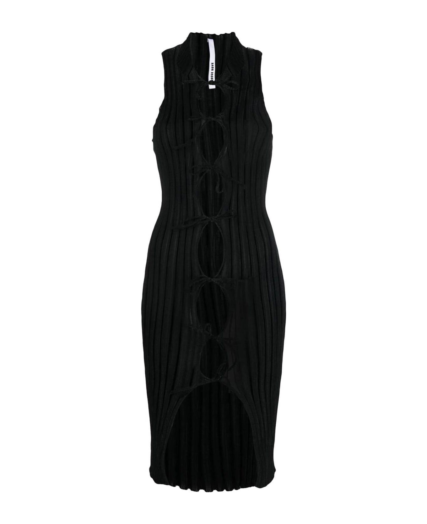 Katrine fitted dress by A. ROEGE HOVE crafted in large-rib cotton-blend knit with full-length string closure on the front. The model is 177 cm tall and wears a size M/L.