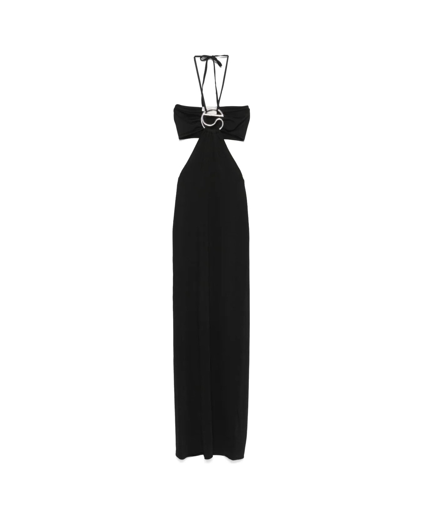 SKU: COPML135Y3010_BLK black halterneck tie fastening ruched detailing cut-out detailing logo plaque