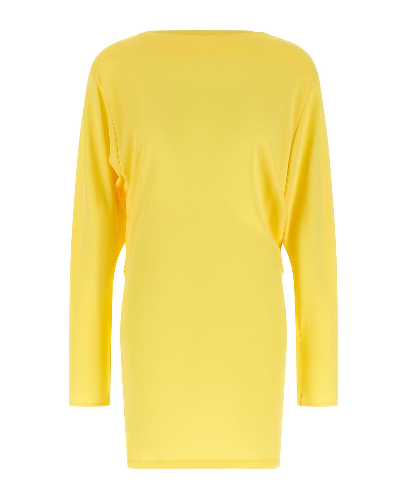 'La Robe Mistral' fluid viscose jersey mini dress with boat neckline, wide cut-out and back draping, long sleeves with dropped shoulders. Composition: 83% viscose, 17% polyamide