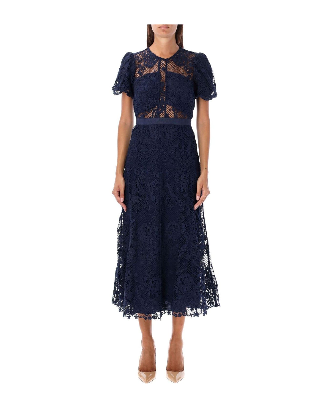 Laced Puff Sleeved Midi Dress
