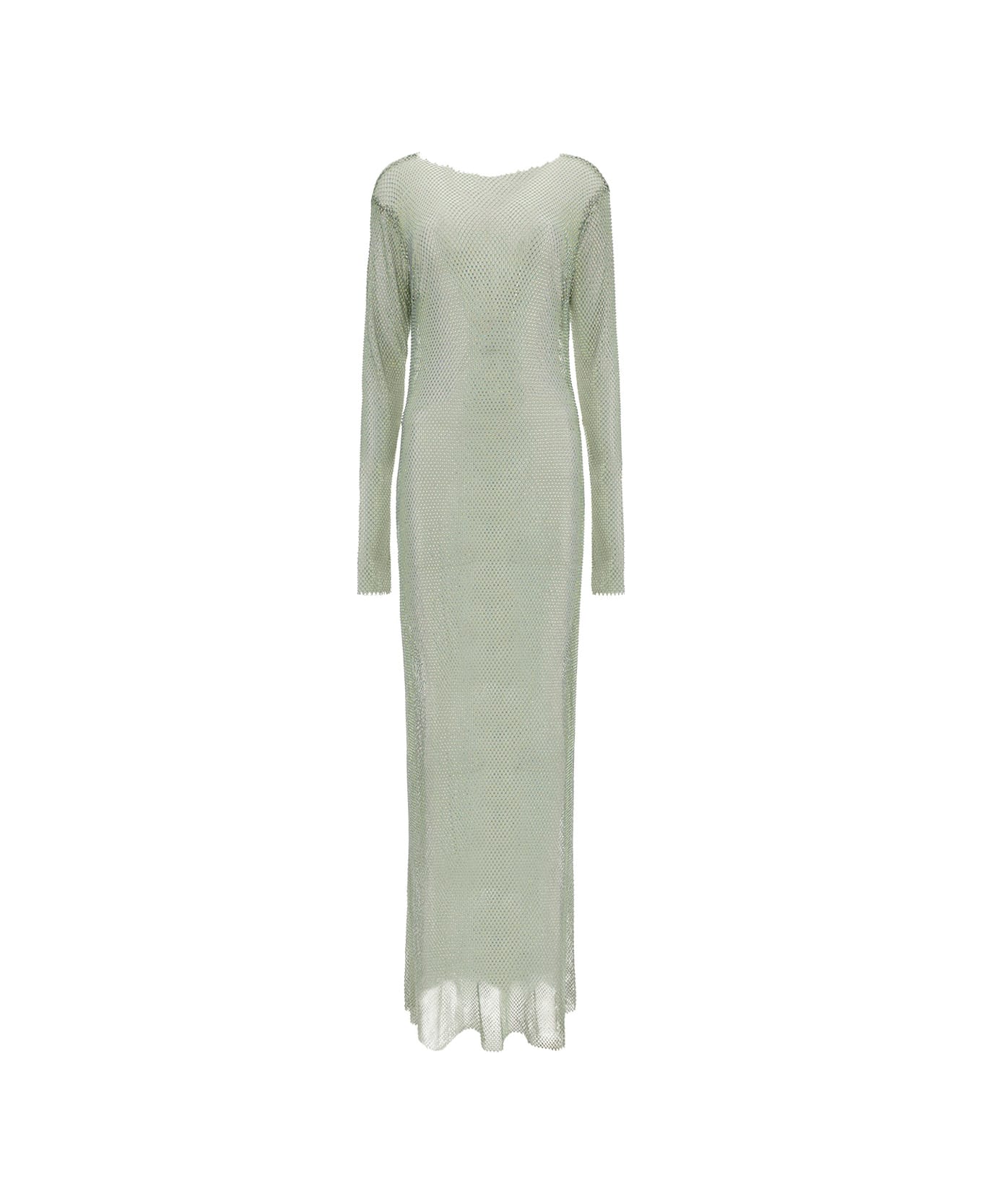 Lea dress by new arrivals, round neck, jeweled mesh fabric design, long sleeves, floor-length dress, sheer design.
