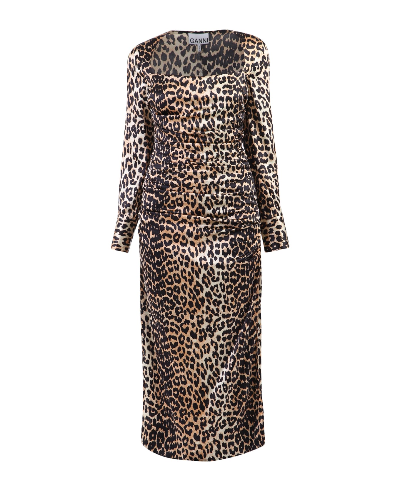 Leopard print dress from Ganni: Leopard print dress with long sleeves, button cuffs, side slit.