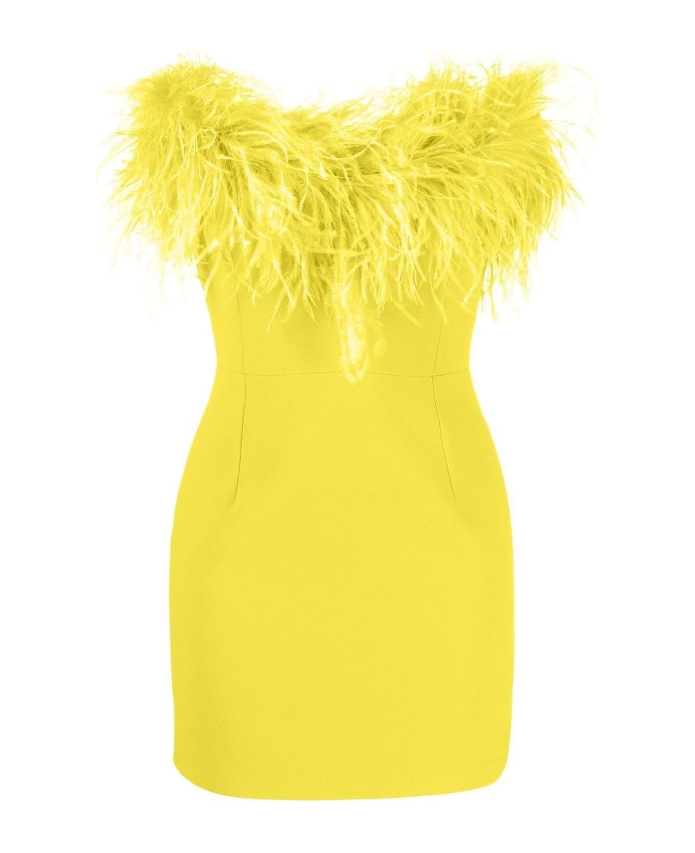 Light green minidress featuring wideneck, strapless, ostrich feather