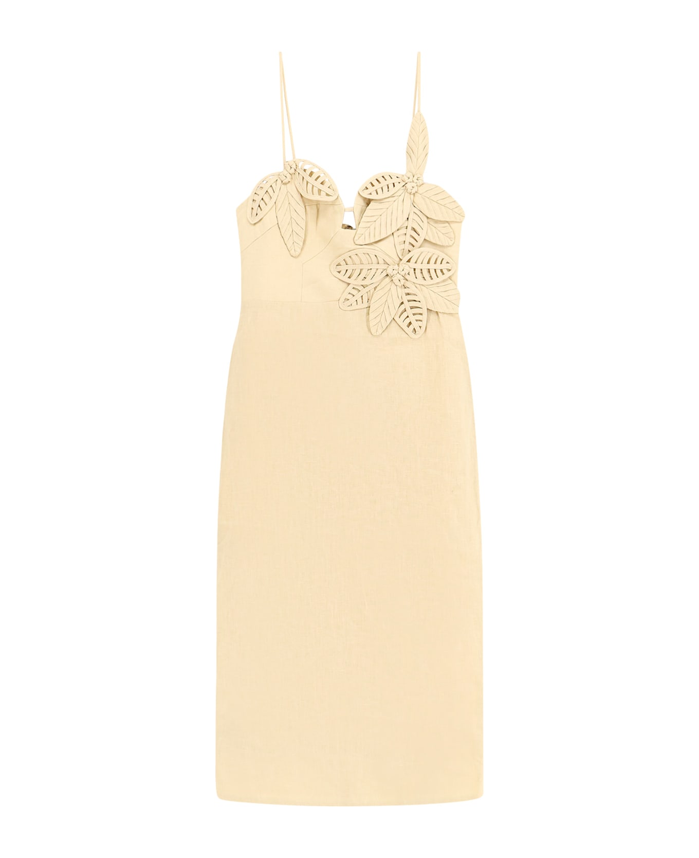 SKU: 333875_L0029 - Zip closure on the back adjustable straps linen floral applications lined 100% linen