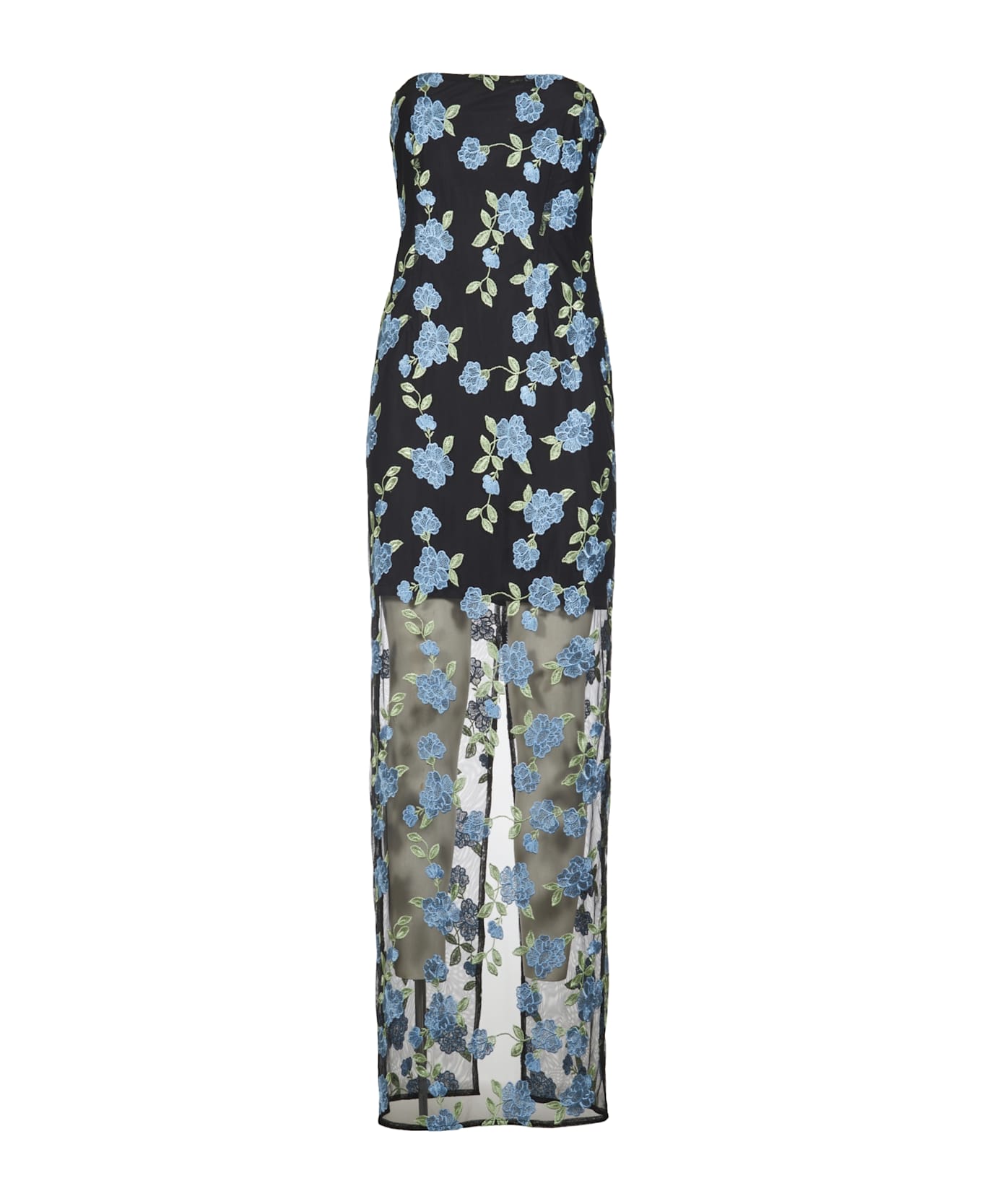 Long Dress With All-over Floral Motif And Semi Sheer Lower Part In Tech Fabric