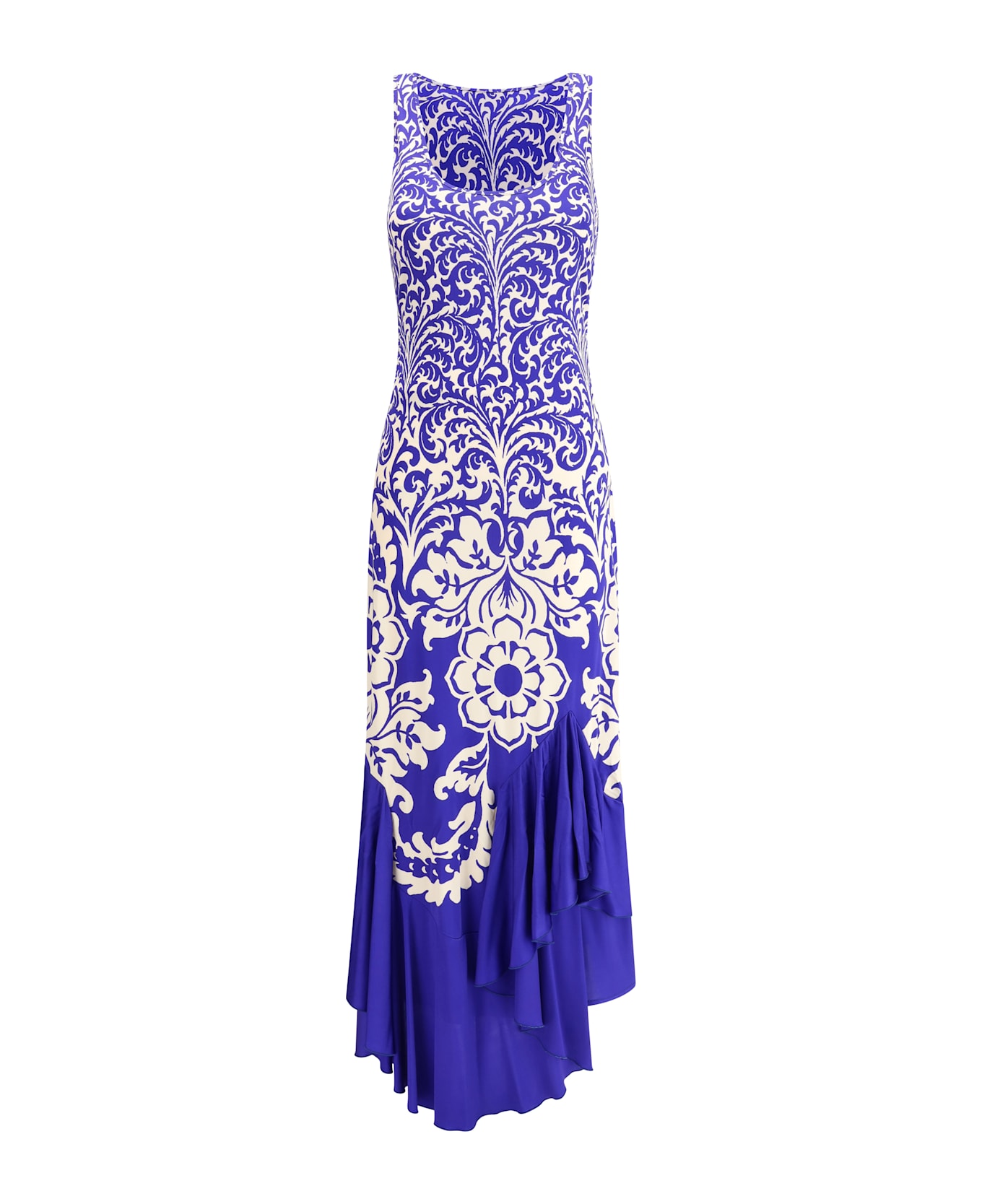 Long dress by etro with a modern and feminine design. sleeveless model with u-neckline on the front, made of shiny jersey that enhances the silhouette with elegance. the skirt is finished with a soft draped flounce for a fluid and refined effect. featuring a double print and cut-out back that leaves the lower back exposed, adding an unexpected sensual touch. ideal for special occasions and elegant evenings.