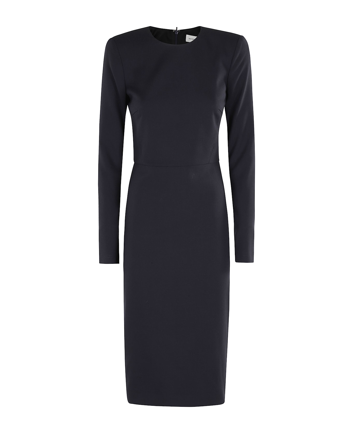 Long Sleeve T-Shirt Dress - Victoria Beckham - navy blue color - crew neck - long sleeves - structured shoulders - sheath design - back zipper closure - midi length - fitted fit