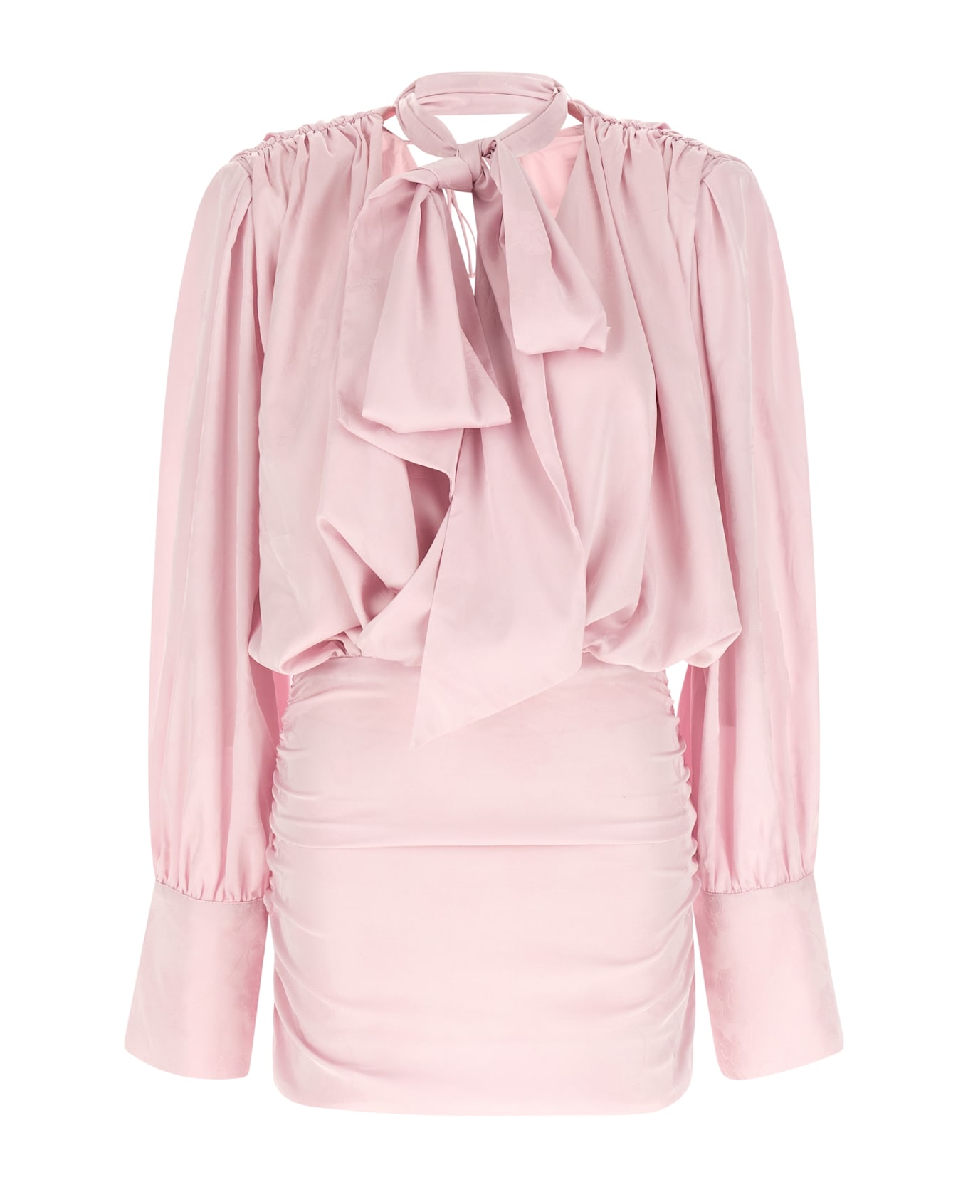 Ls Mini Dress' dress in silk-effect fabric with floral pattern, plunging draped front and back neckline, long sleeves with cuffs and buttons.